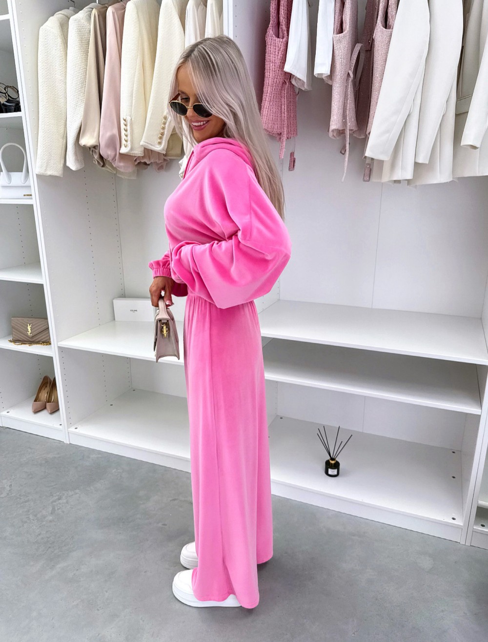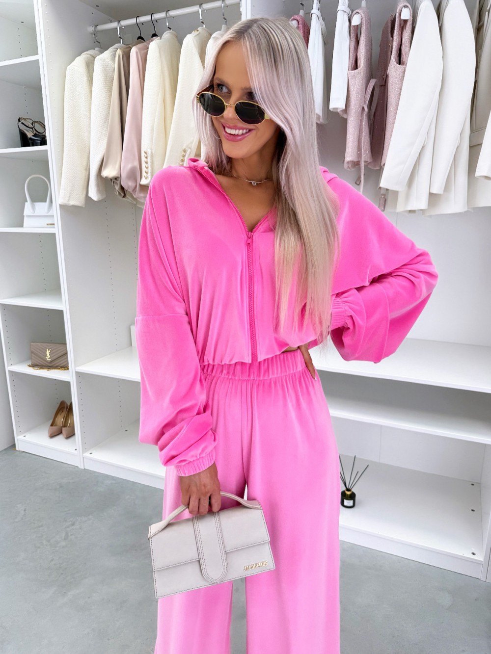 Kaheosaline veluur dressikomplekt (Üks suurus, Fuksia)