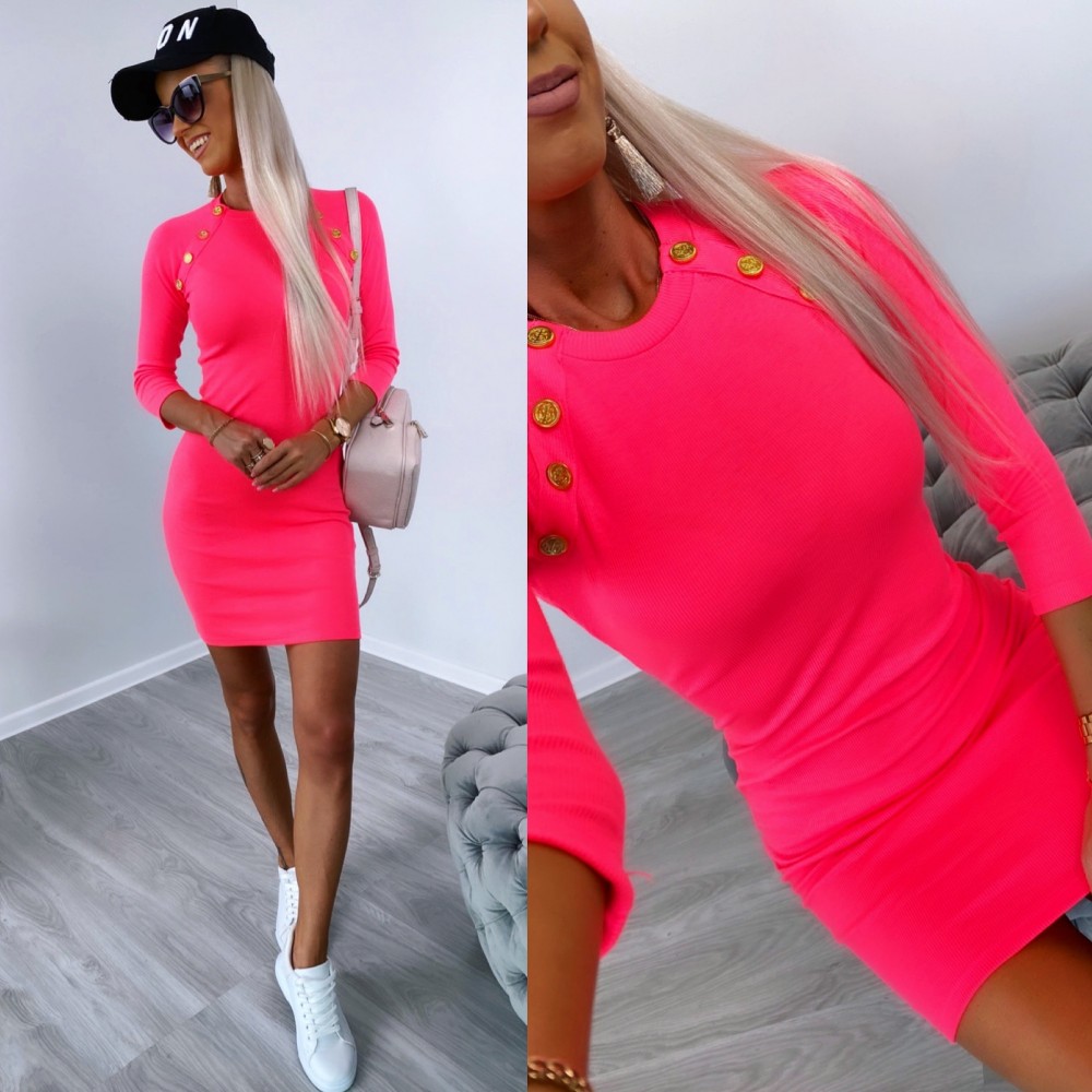 Kuldsete nööpidega vabaaja kleit (Üks suurus, Beež)