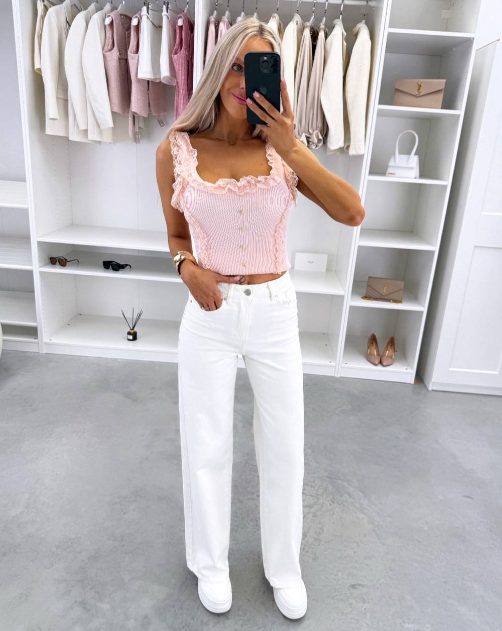 Pehmed ja venivad teksad (S, Valge)