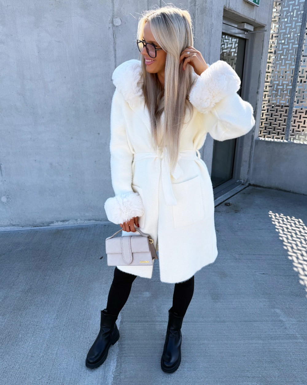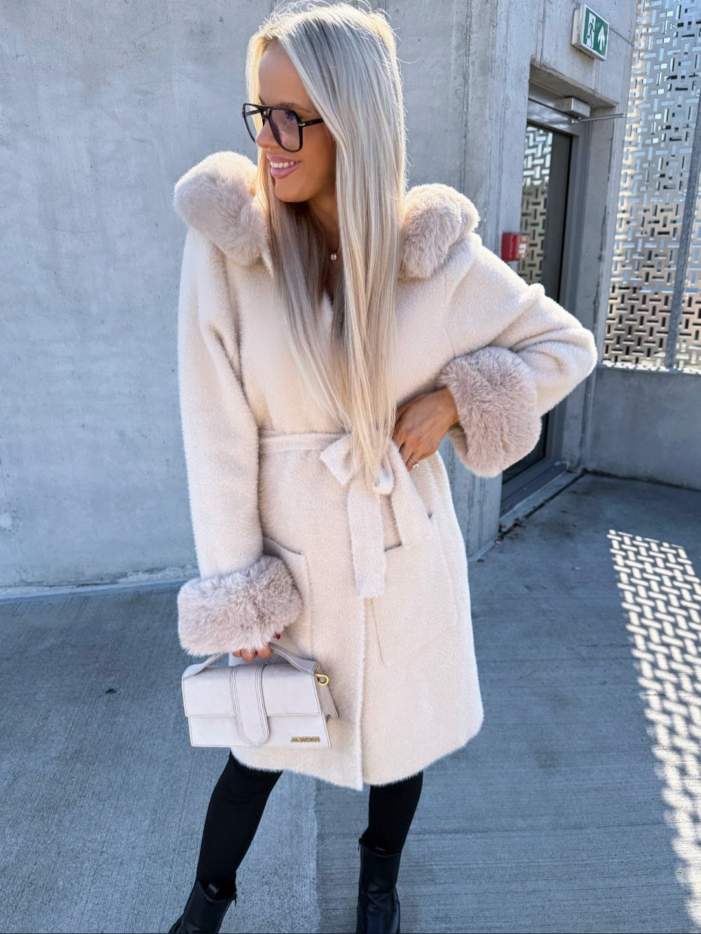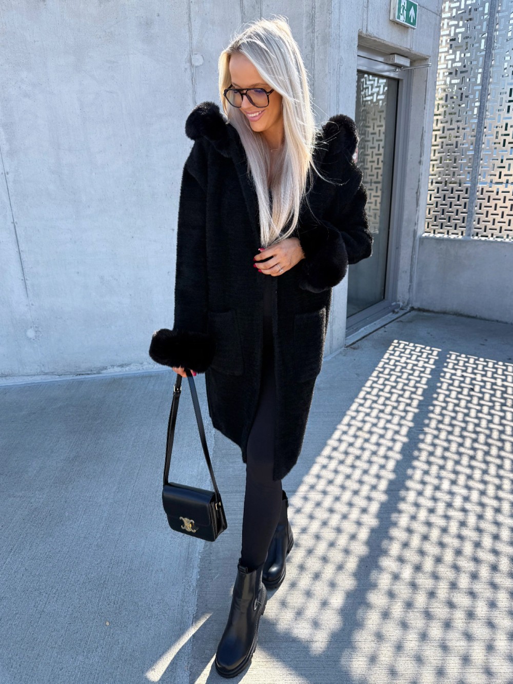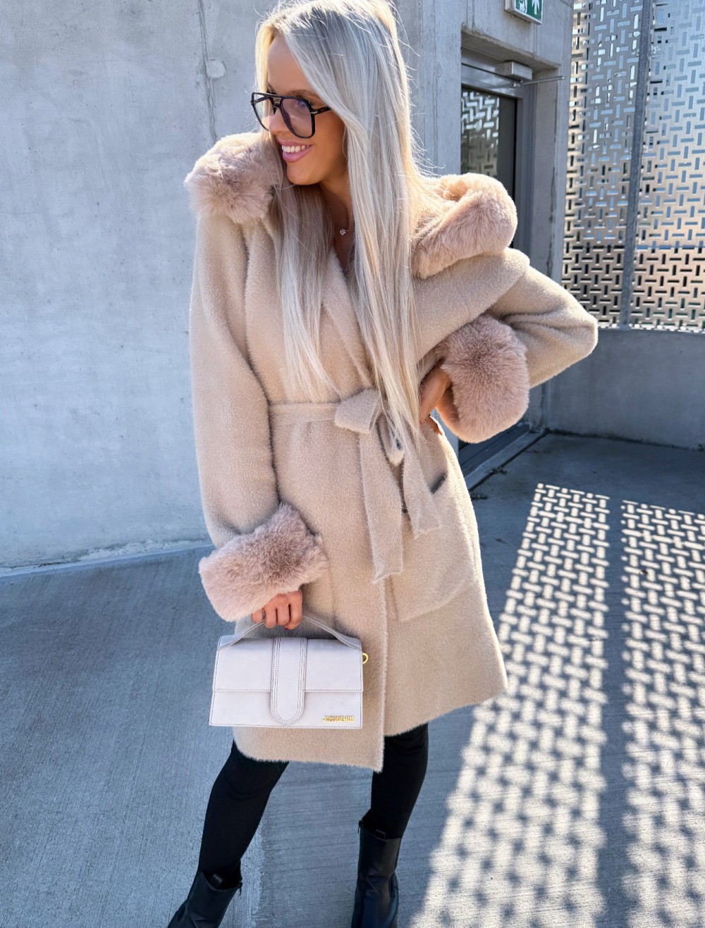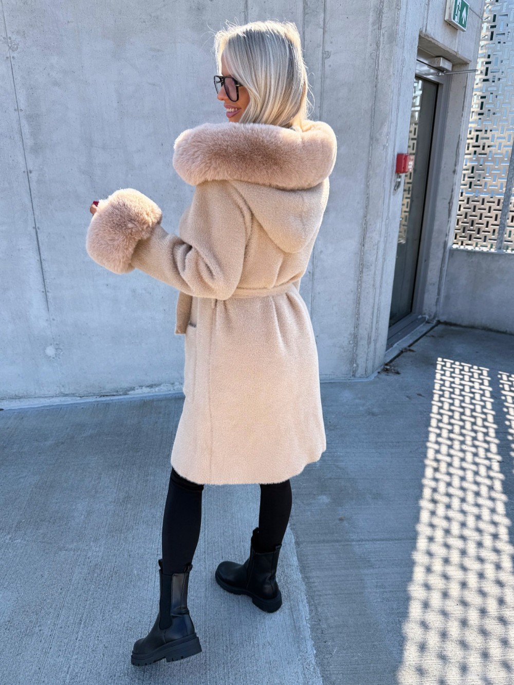 Kapuutsiga keskelt seotav soe alpaka jakk (Üks suurus, Kaamel)