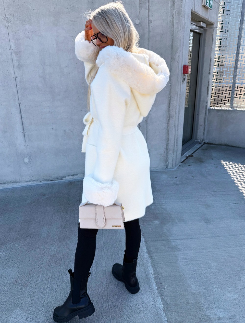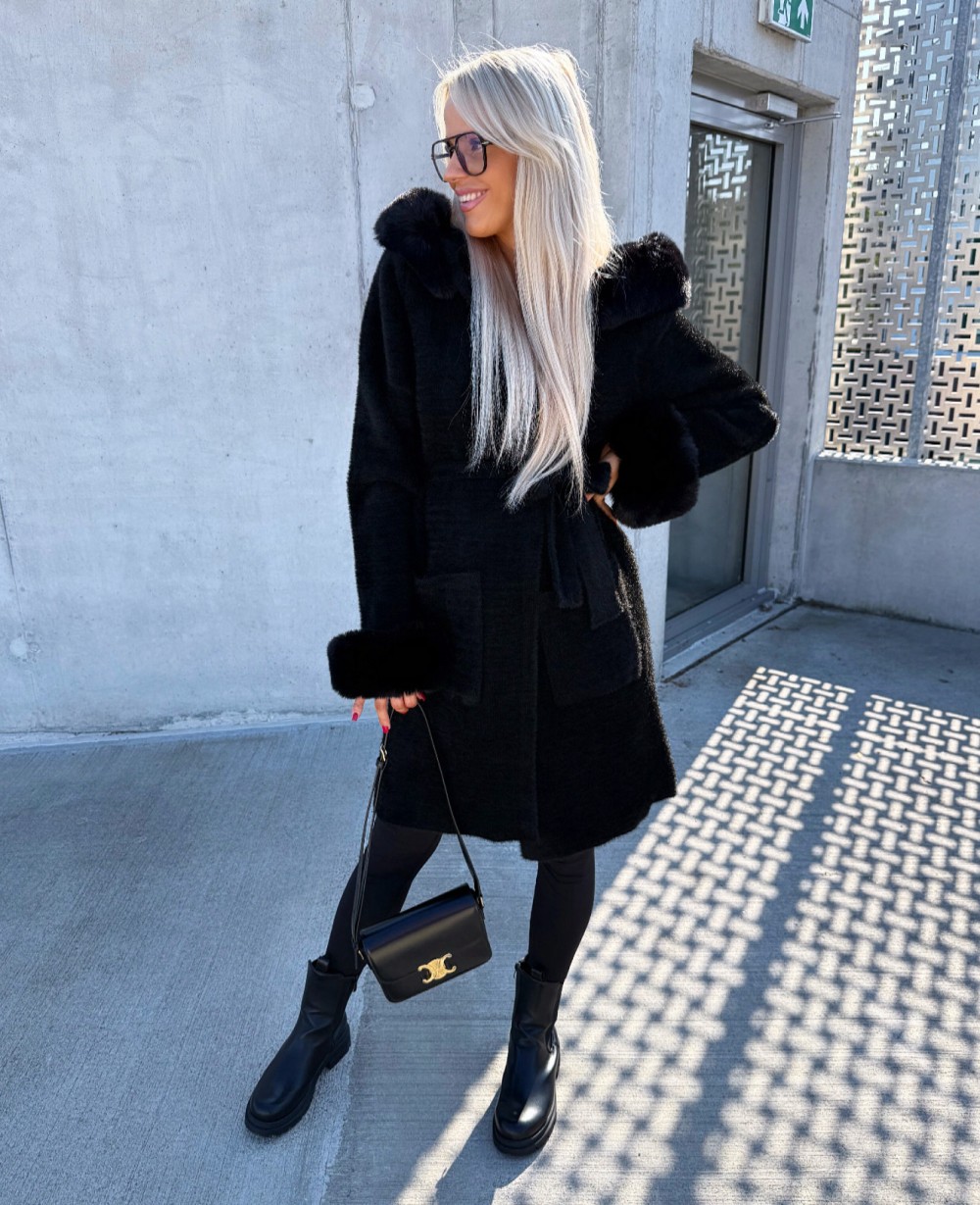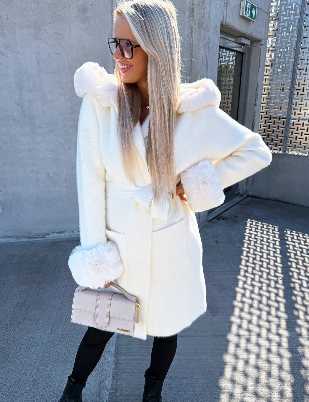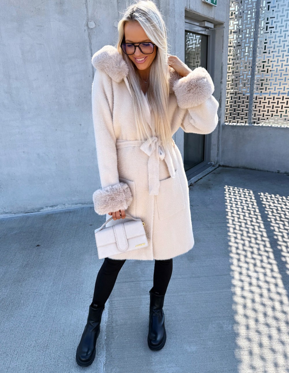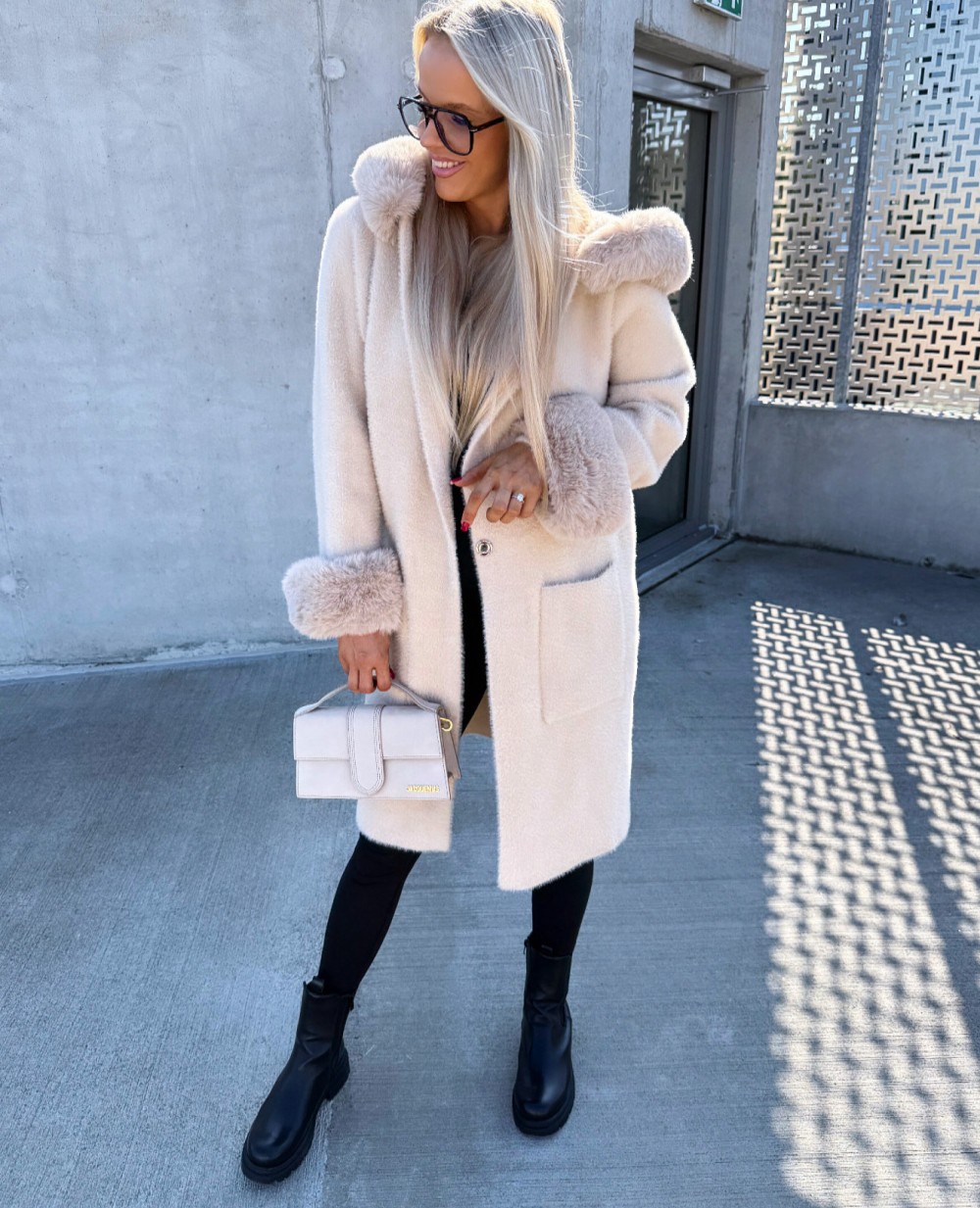 Kapuutsiga keskelt seotav soe alpaka jakk (Üks suurus, Kaamel)