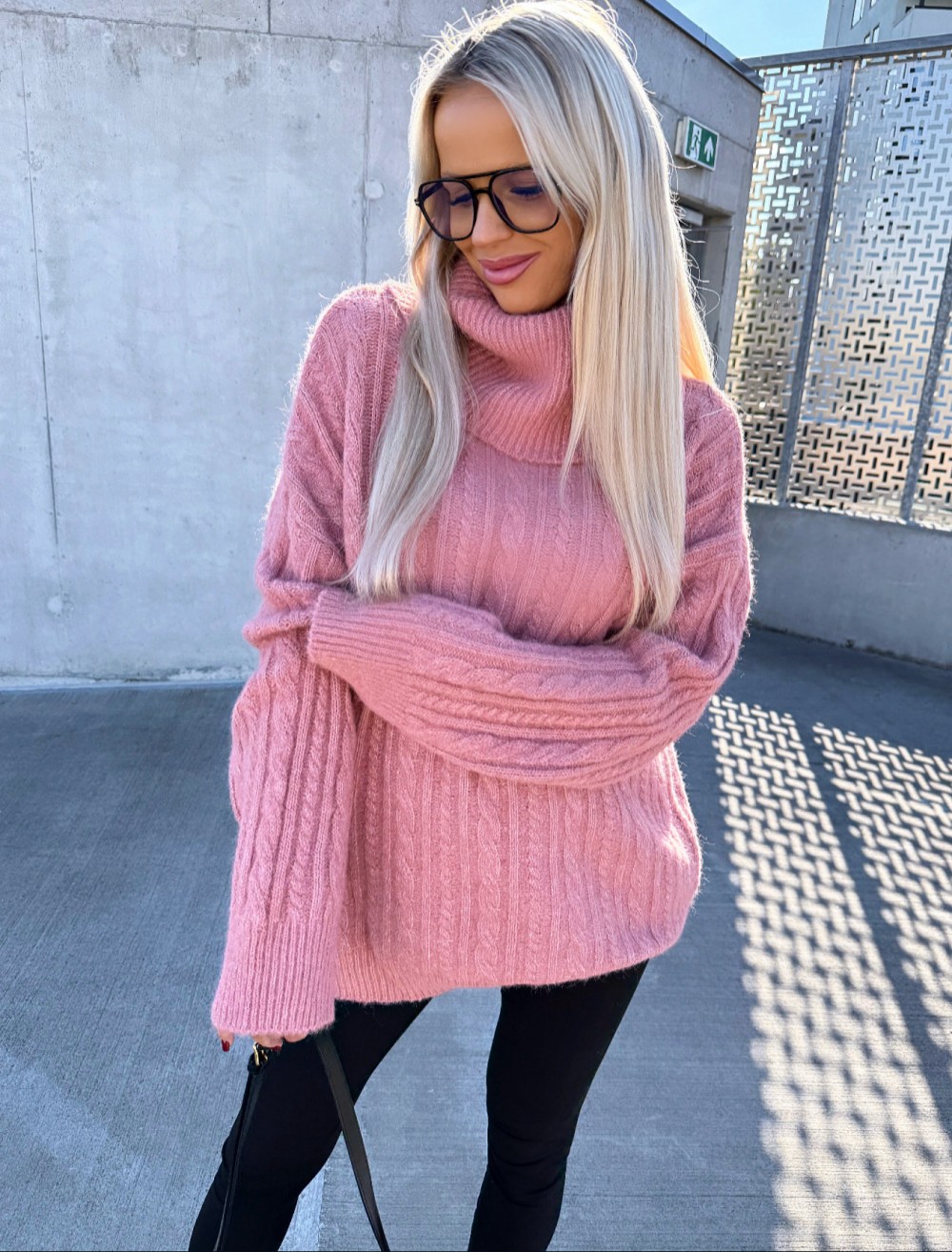 Kõrge kaelusega oversized pehme kudum (Üks suurus, Roosa)