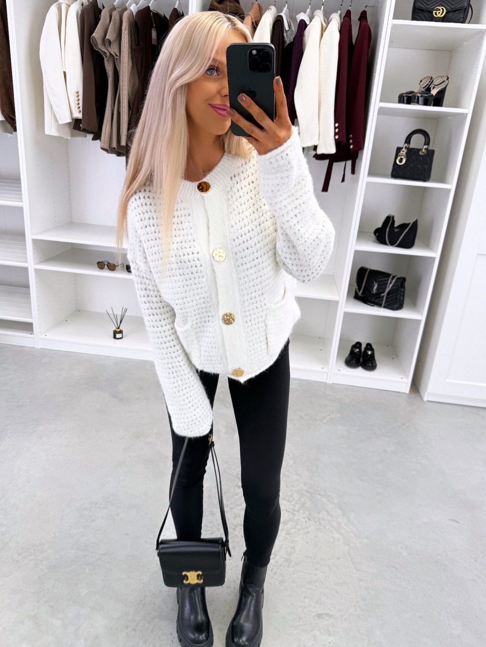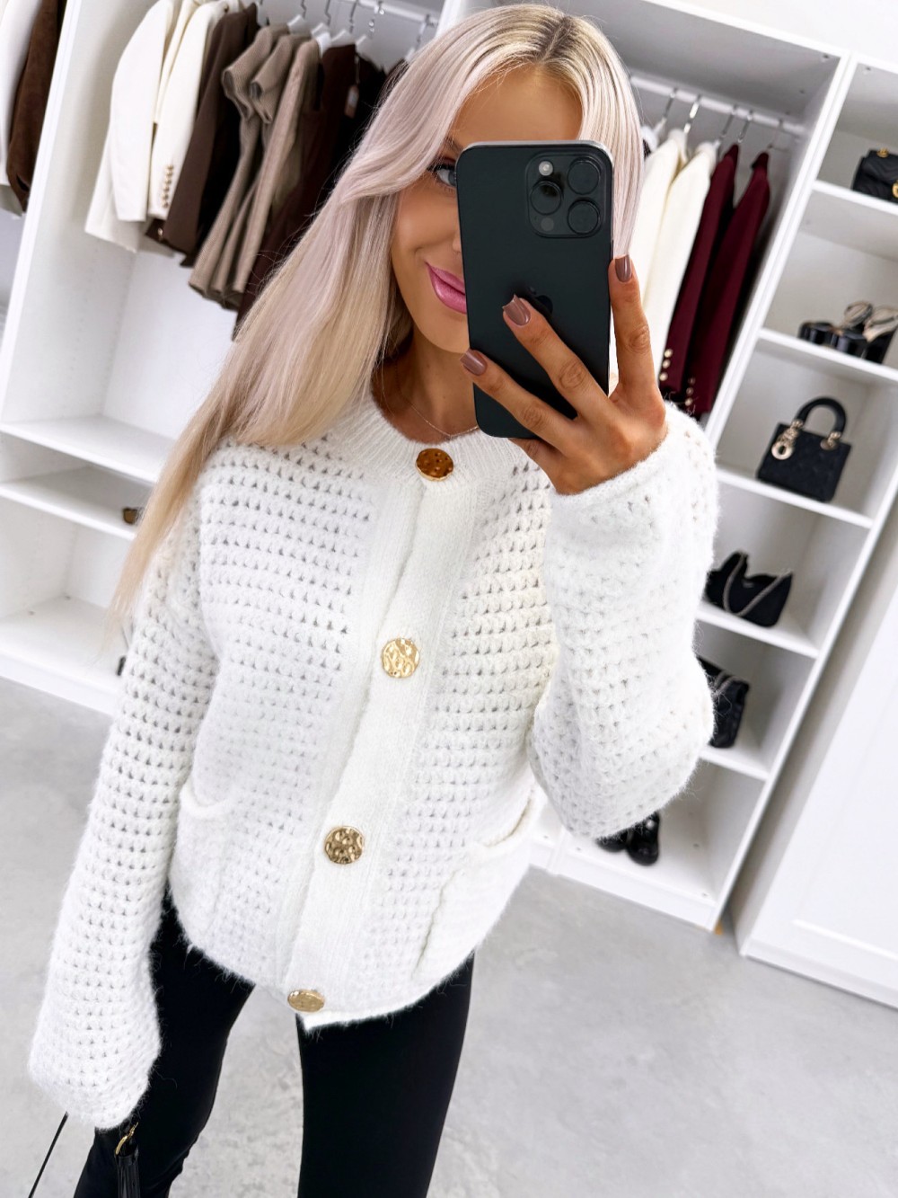Kuldsete nööpidega kampsun (Üks suurus, Valge)