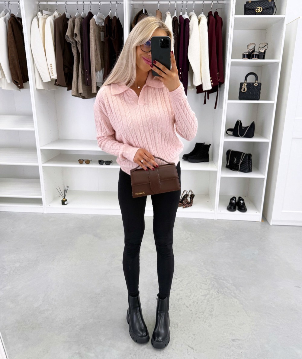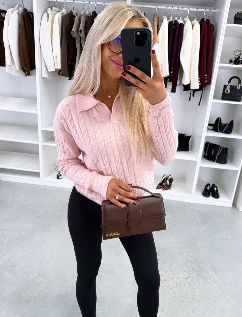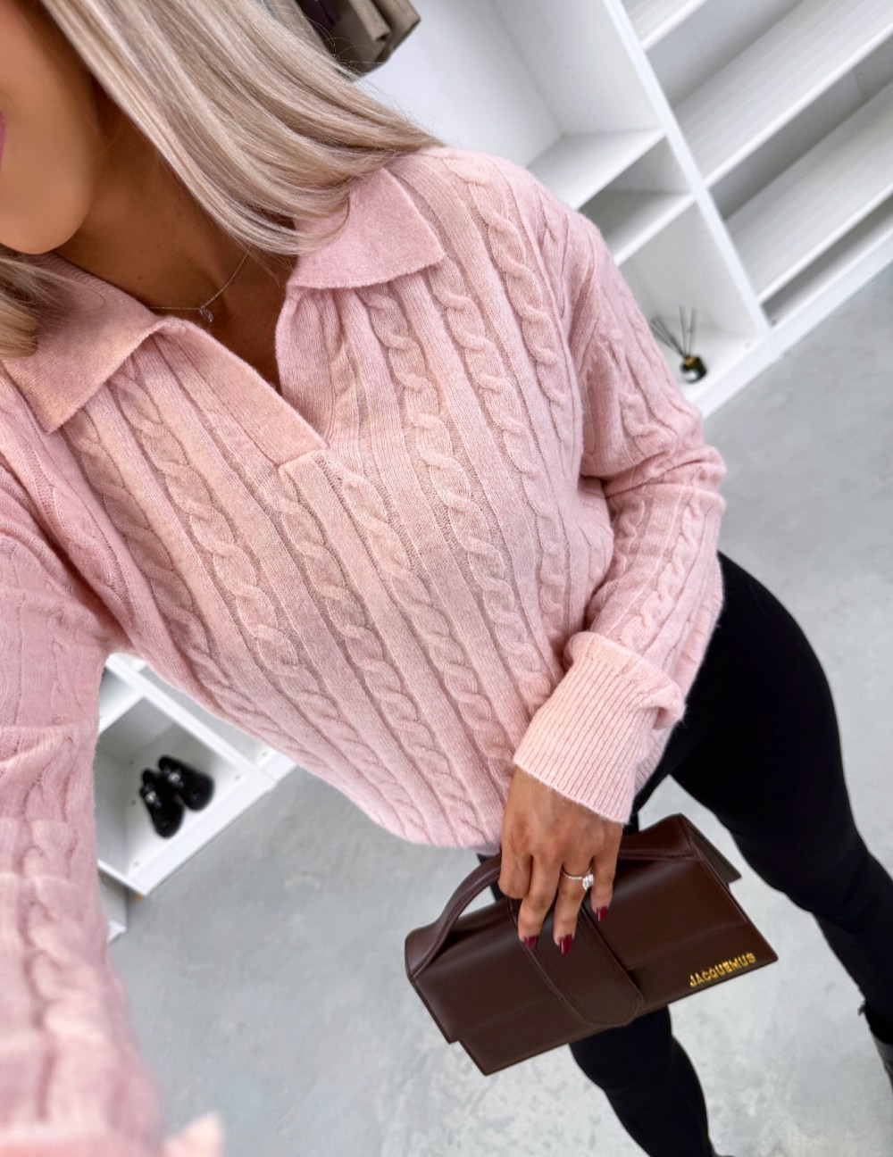 V-kaelusega pehme sviiter (Üks suurus, Roosa)