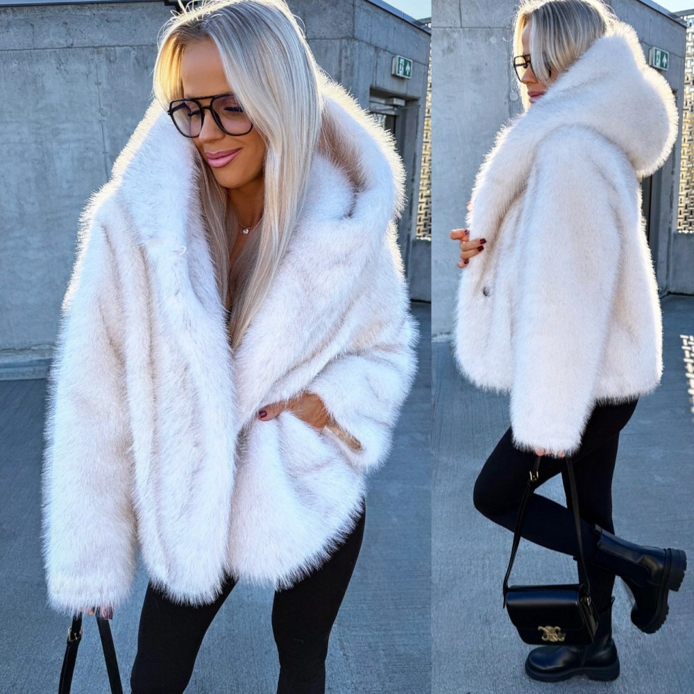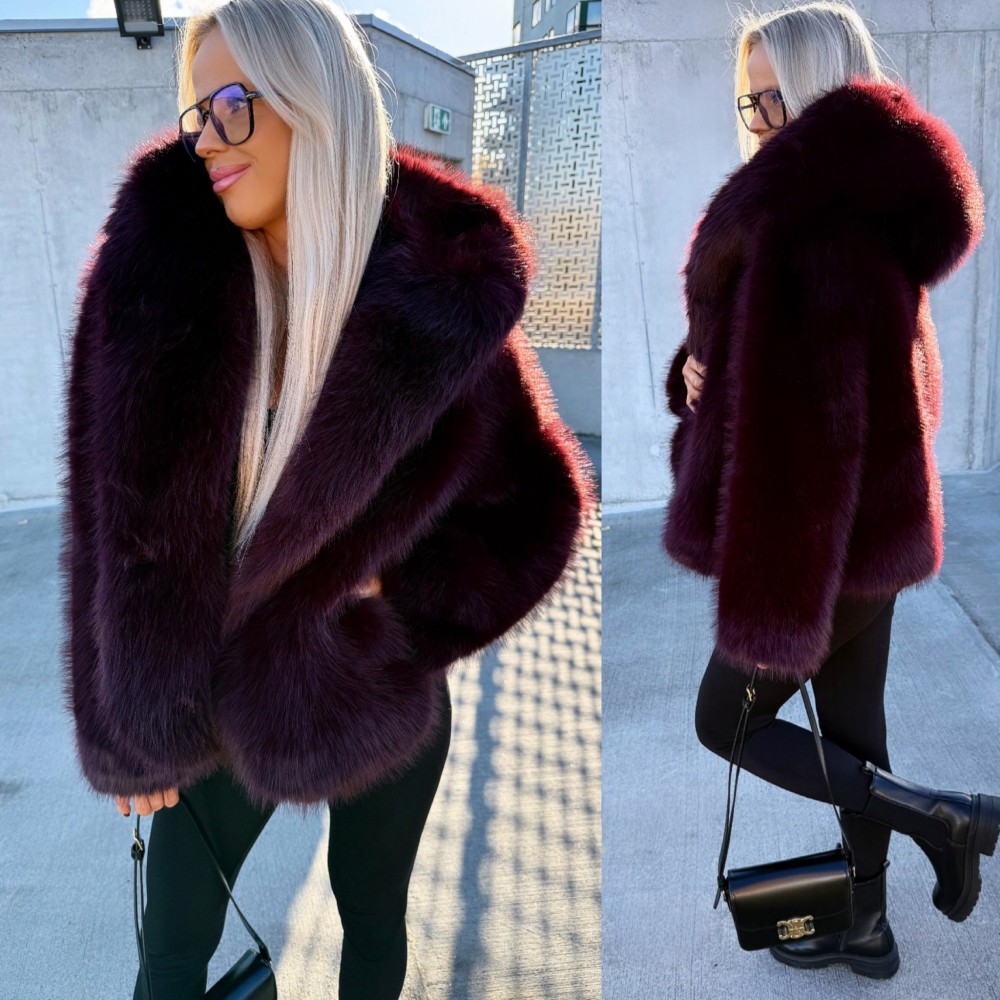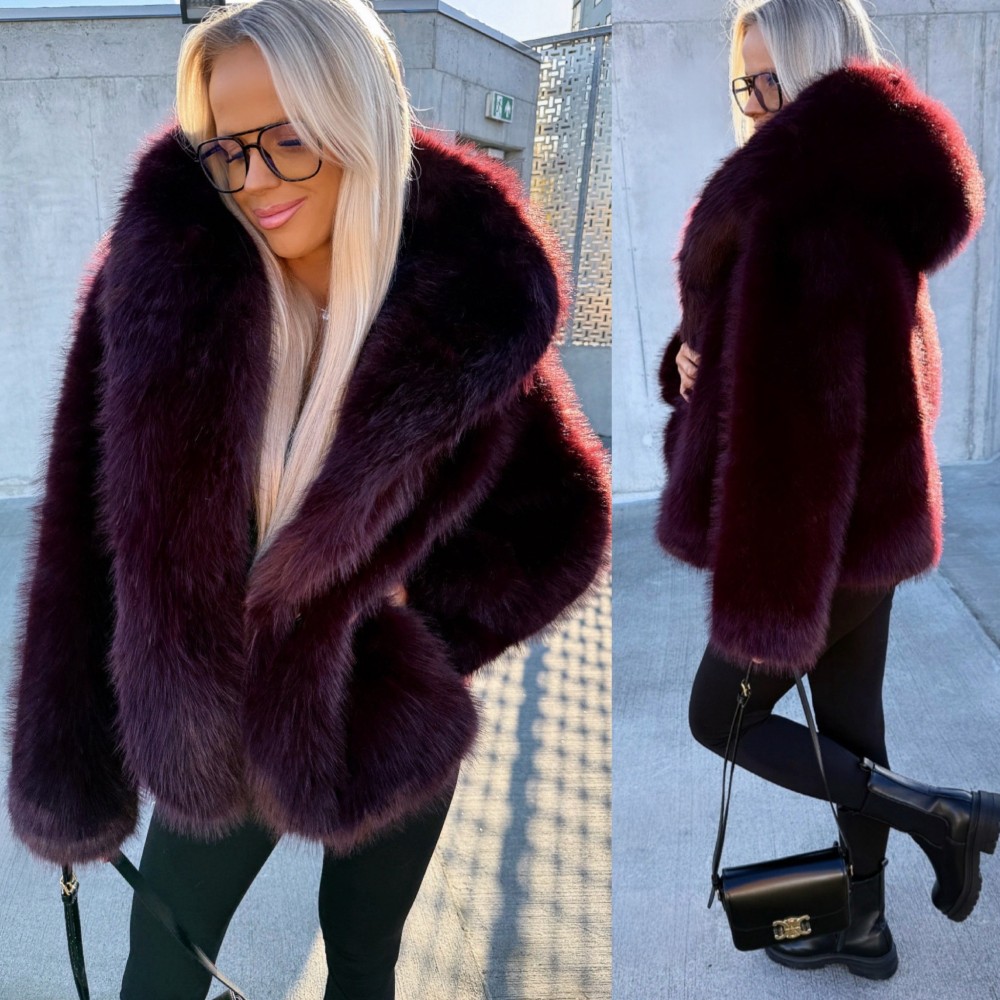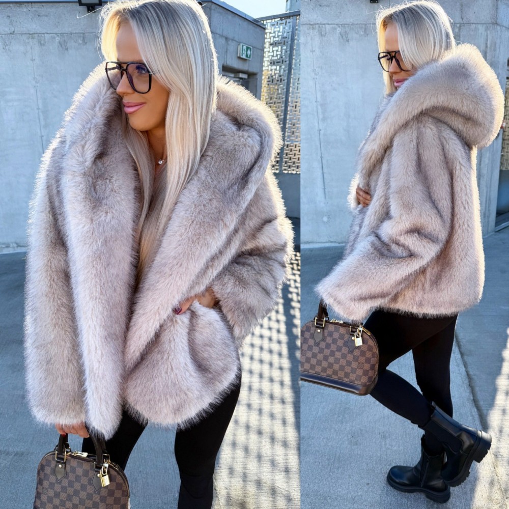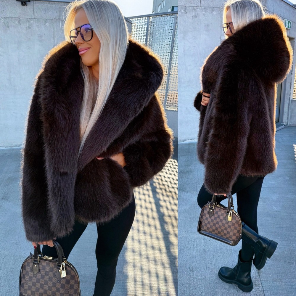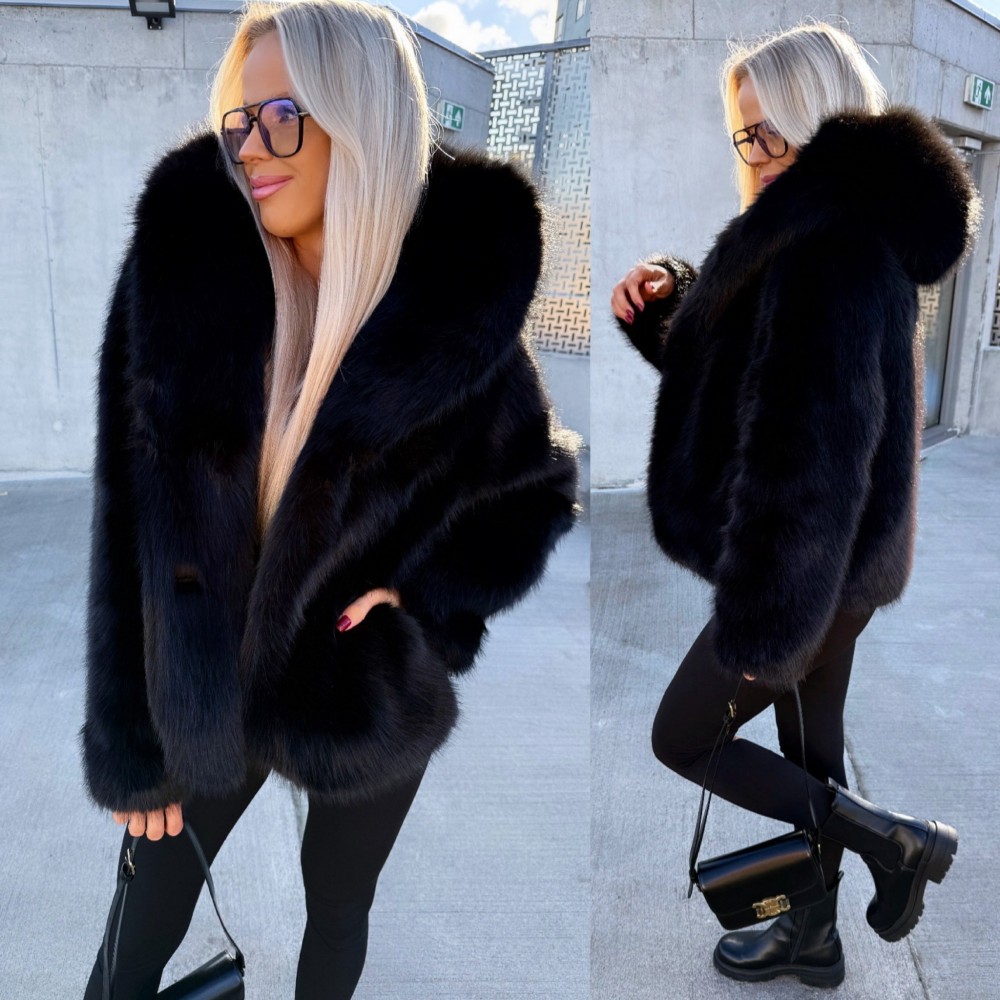 Luksuslik kapuutsiga kasukas (Üks suurus, Must)