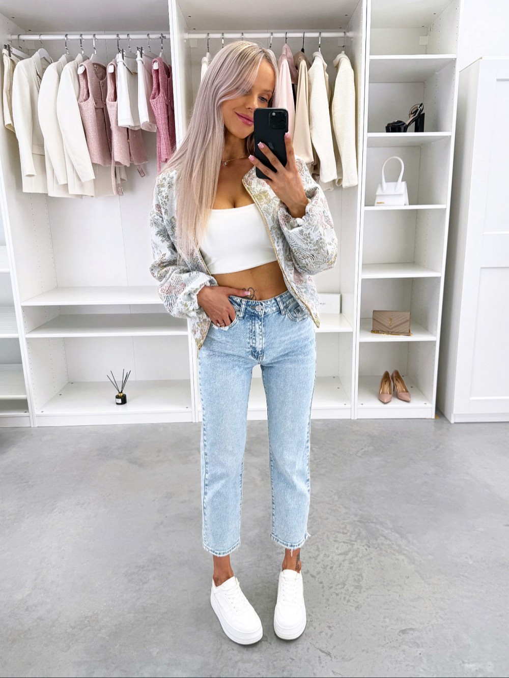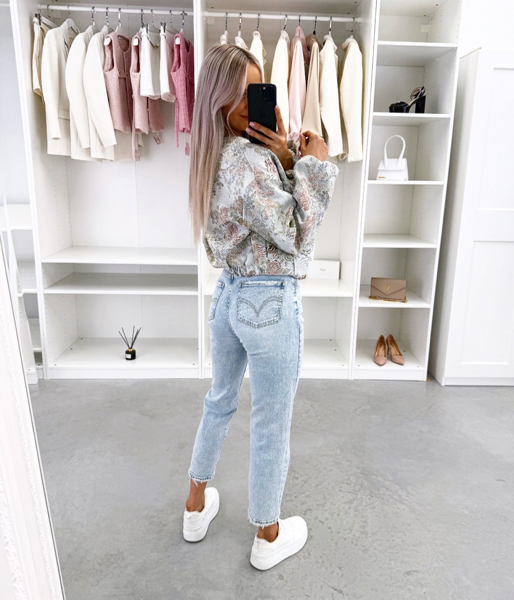 Minkšti ir patogūs mom fit džinsai (L, Šviesiai mėlynas)