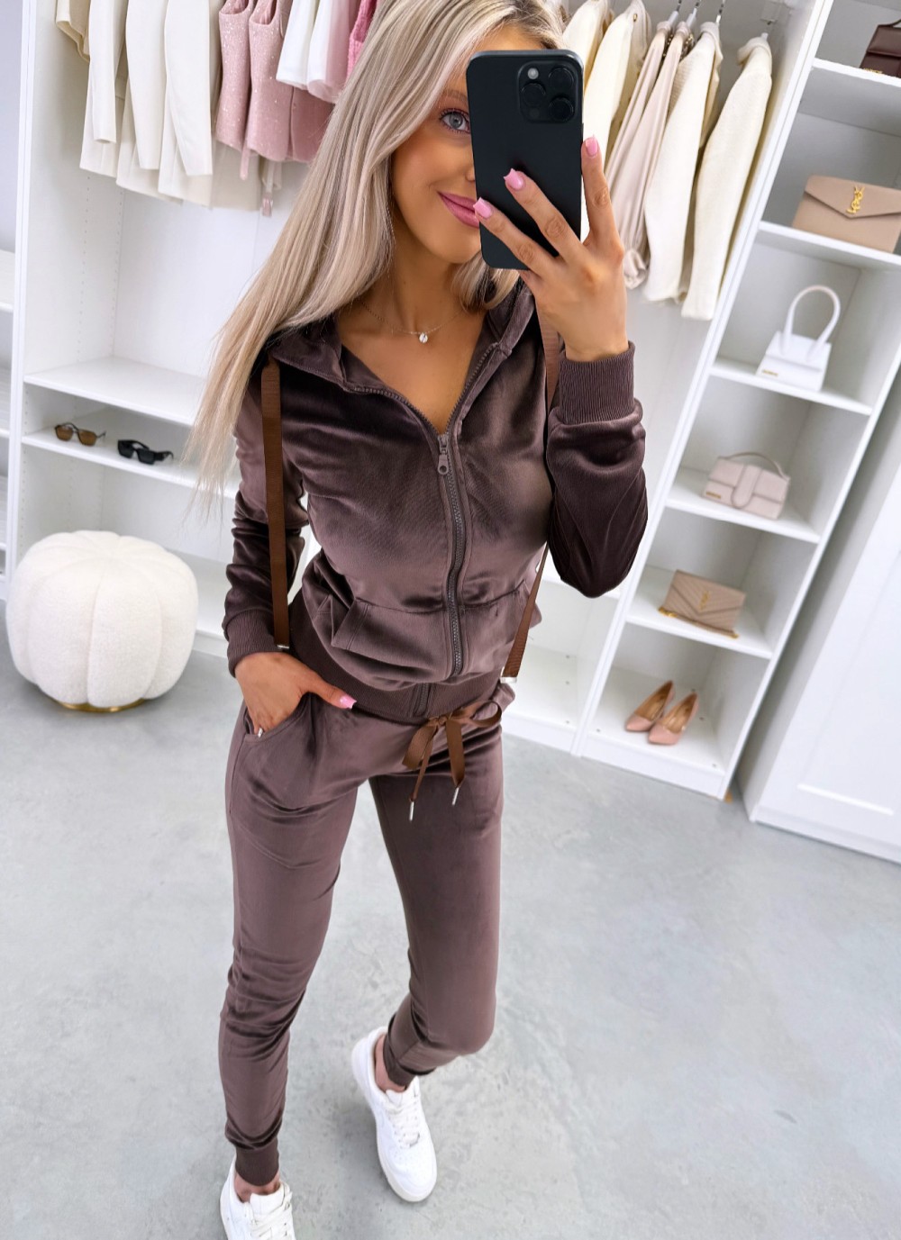 Aksominio sportinio kostiumo rinkinys (Juoda, M/L)