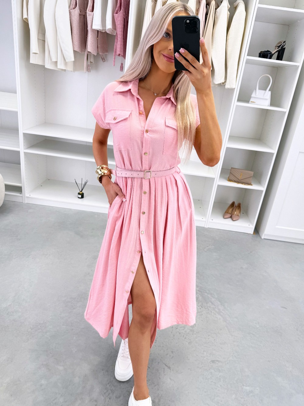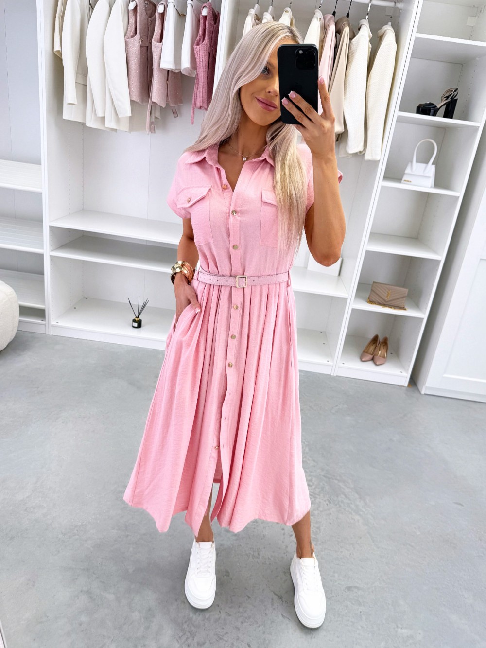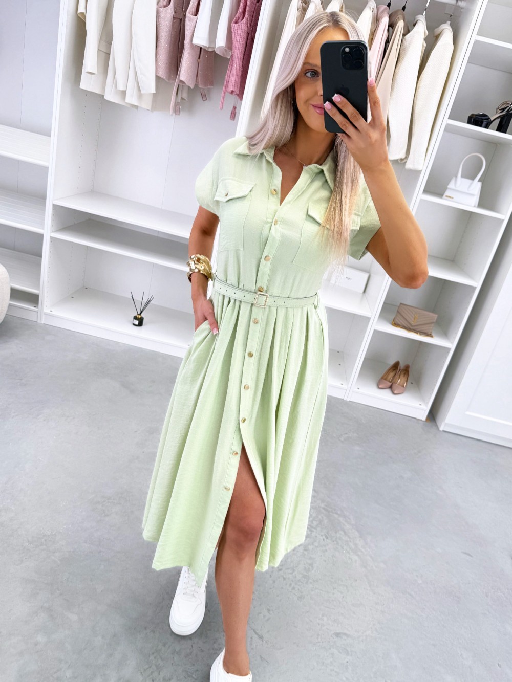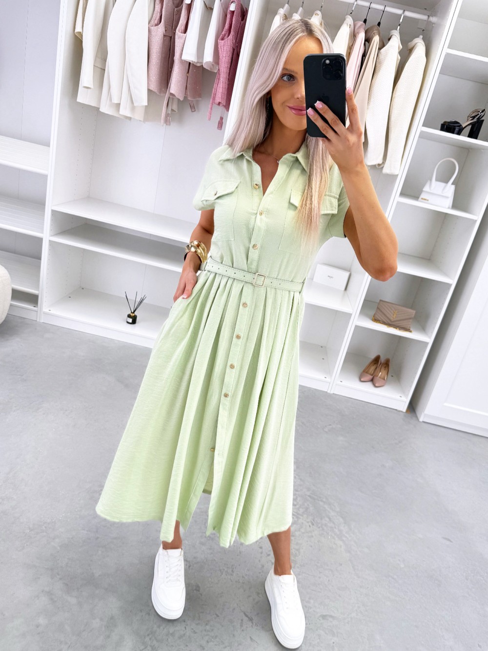 Patogi suknelė su diržu (Žalias, S/M)