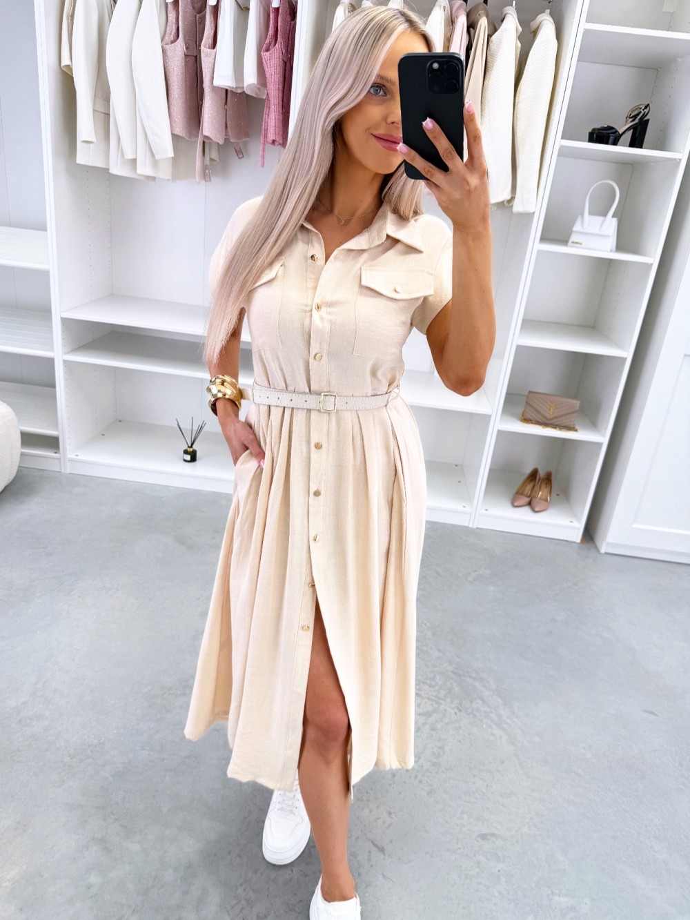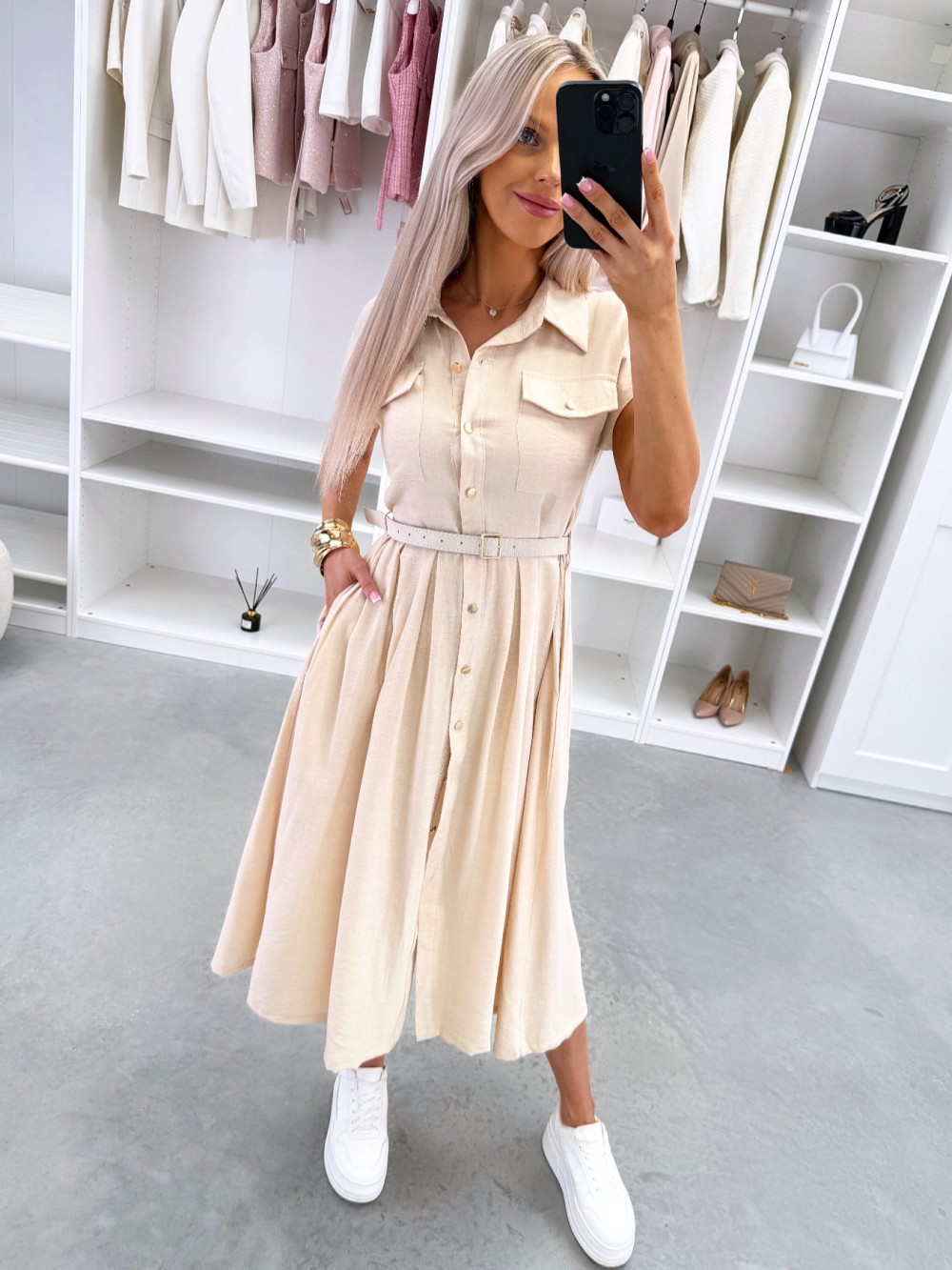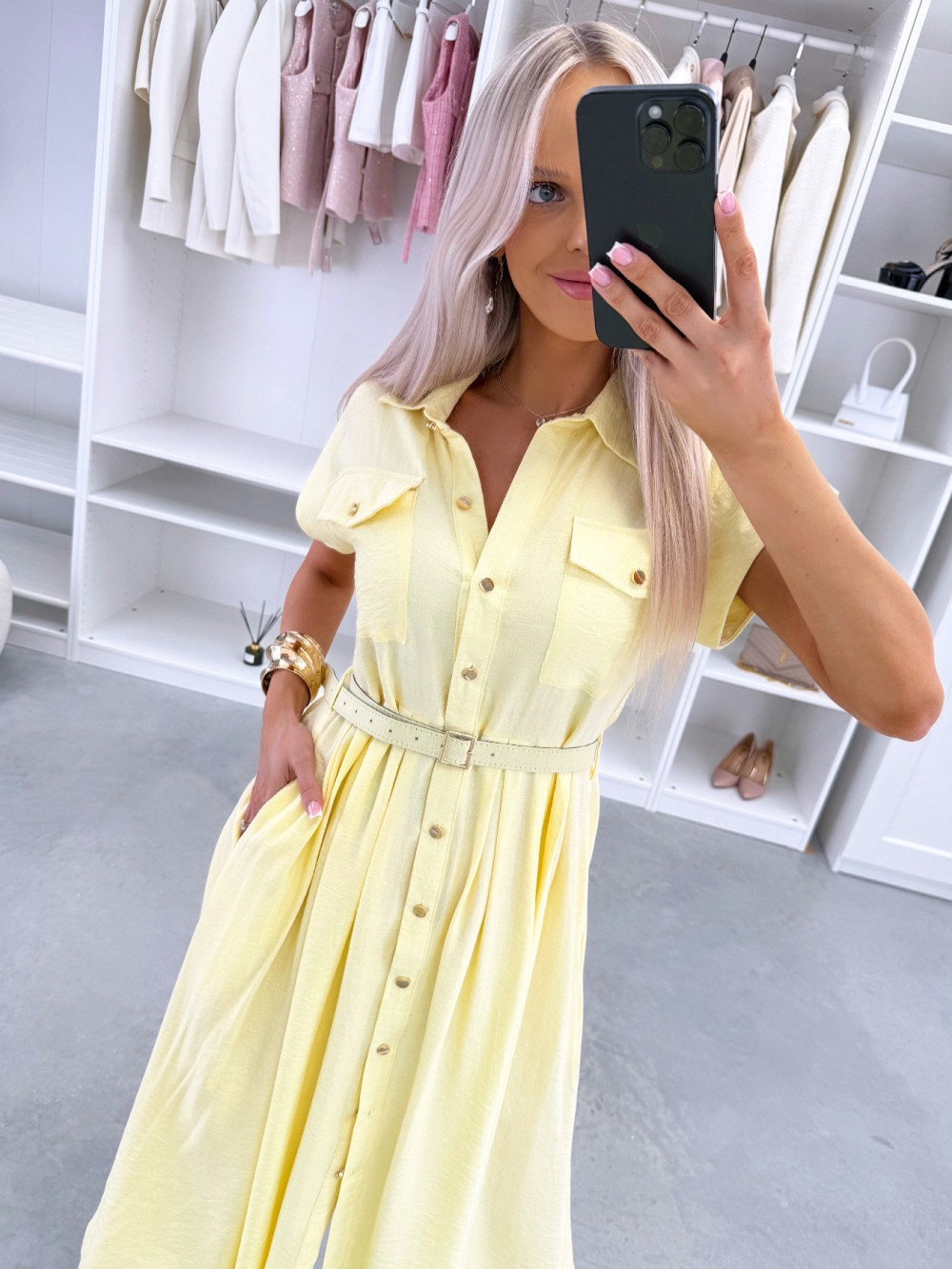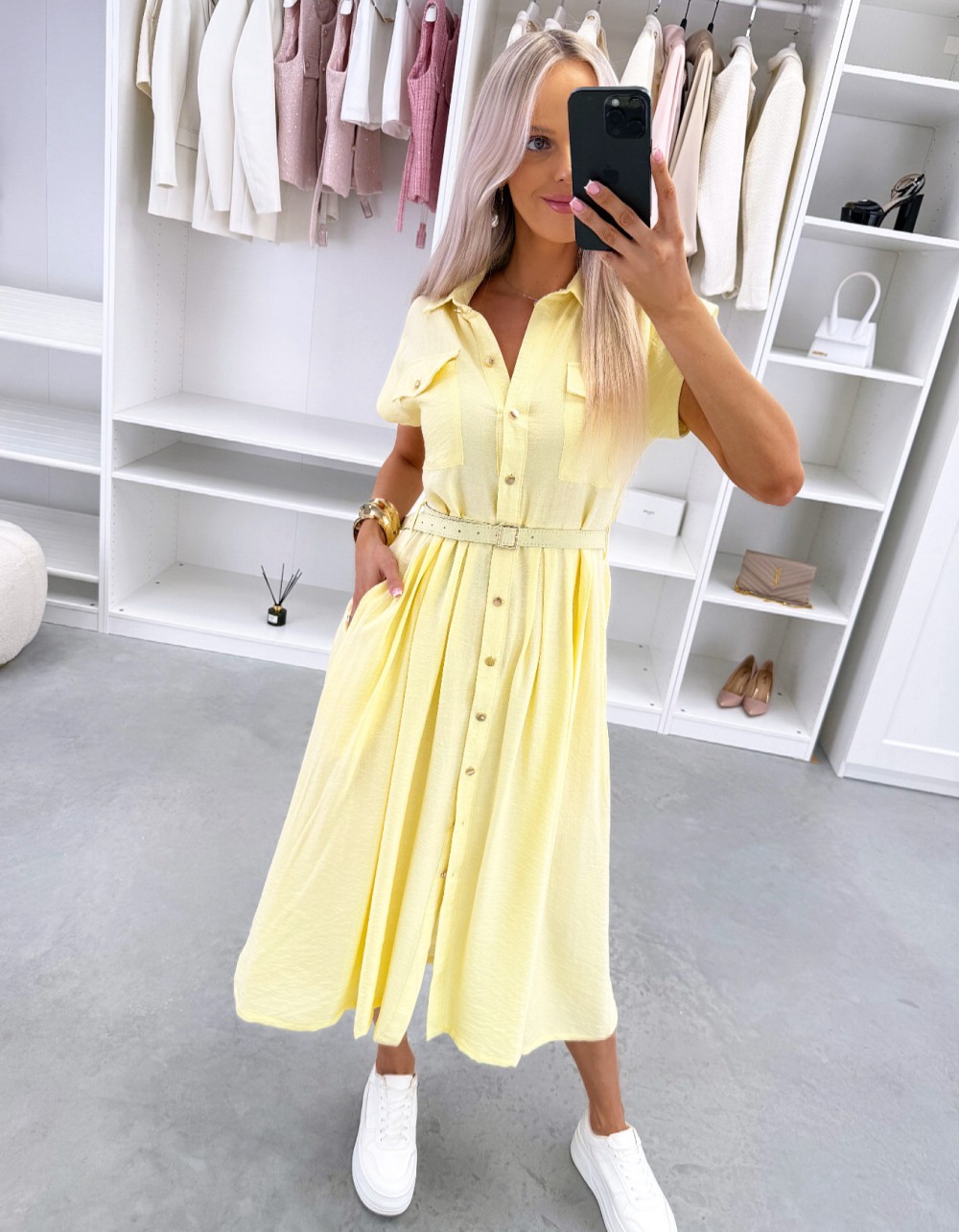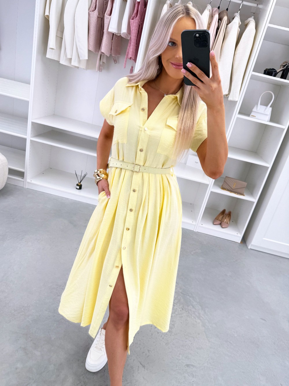 Patogi suknelė su diržu (Žalias, S/M)