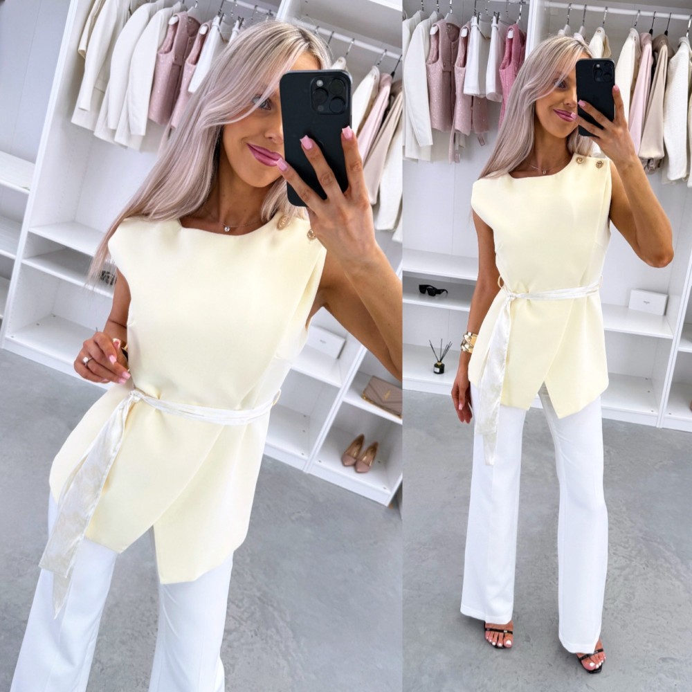 Liemenė-švarkas su surišamu priekiu (S, Balta)