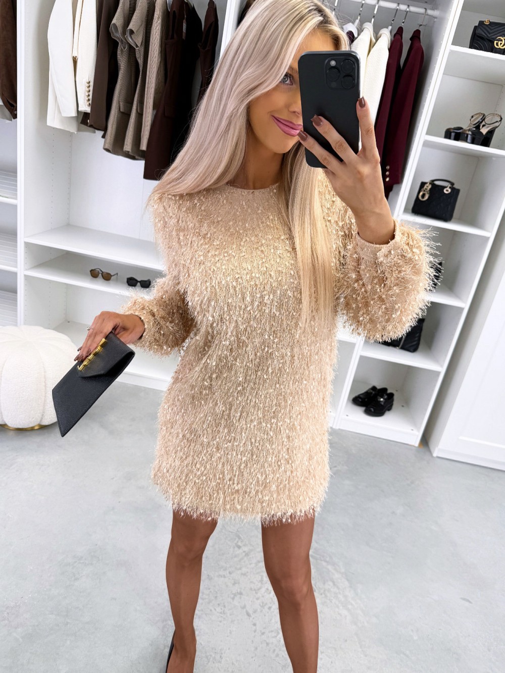 Garām piedurknēm plūstoša kleita (S, Melns)