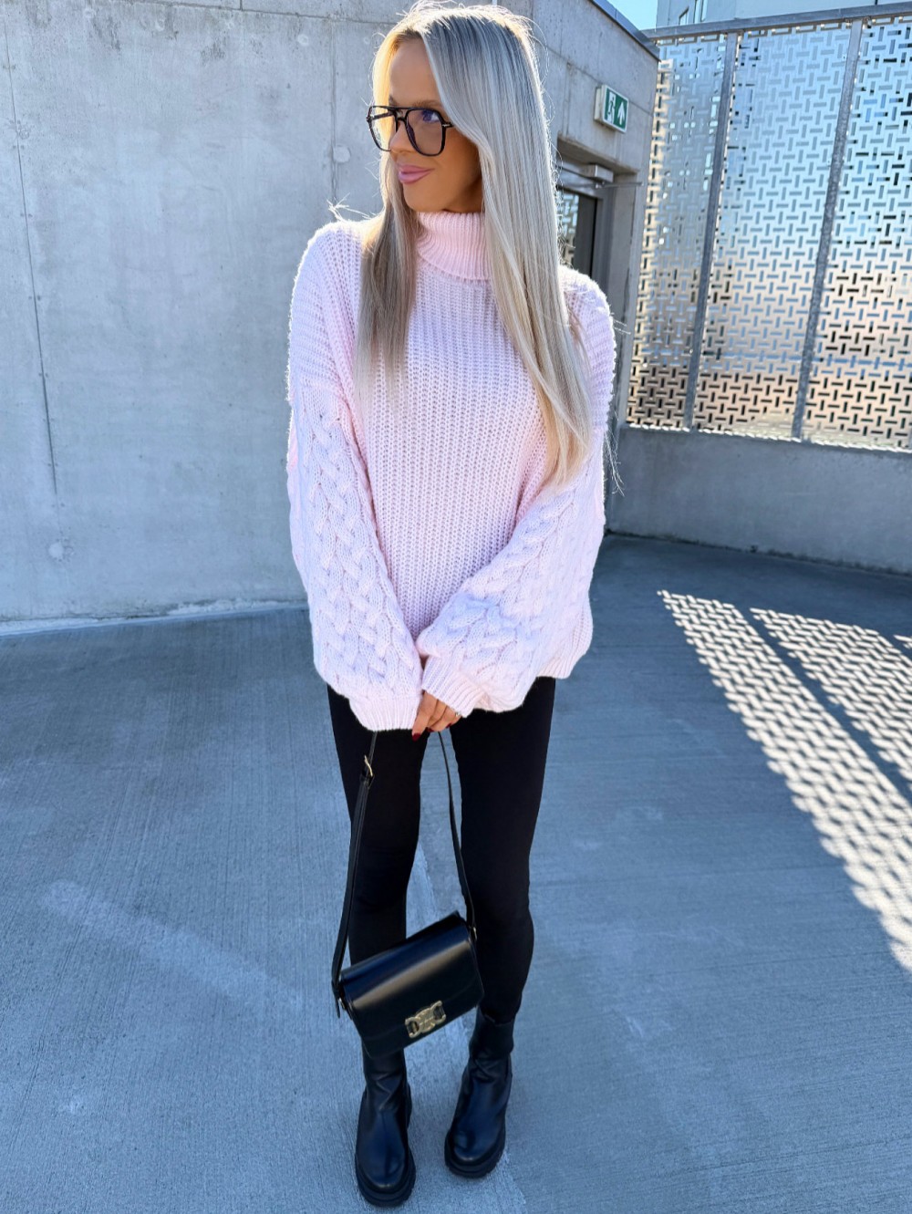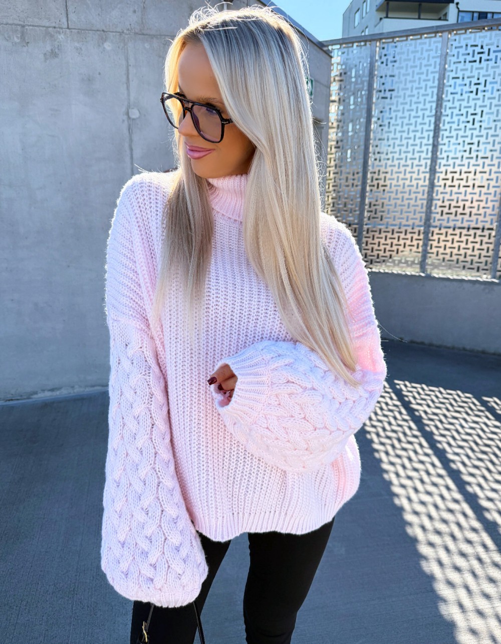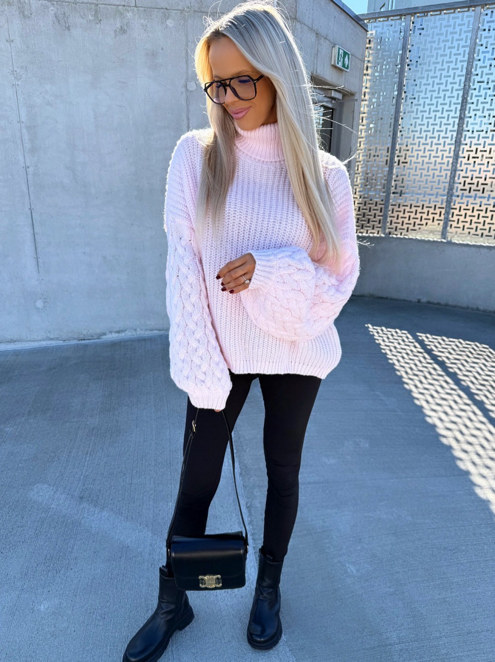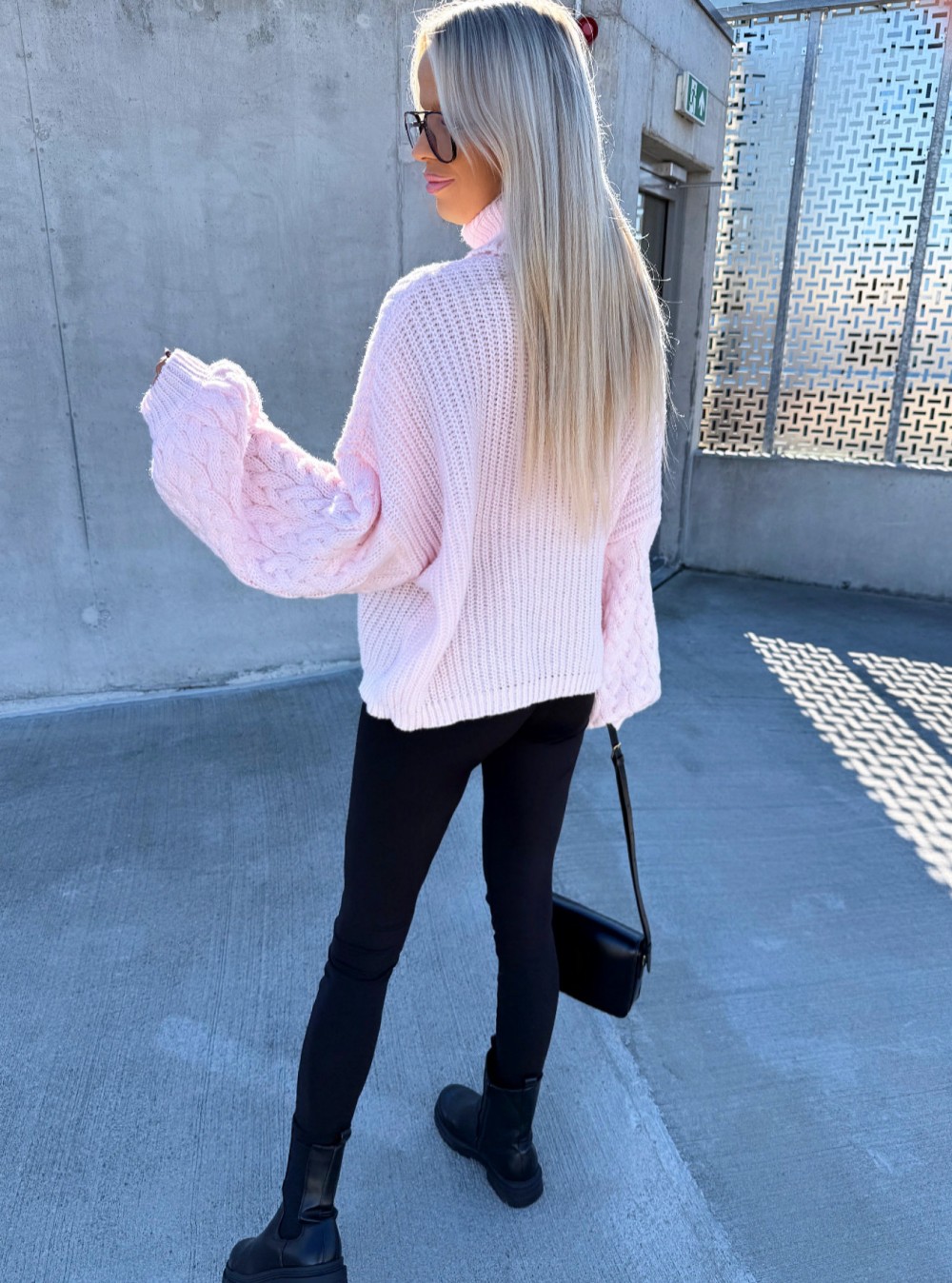 Oversize adījums ar augstu apkakli (Viens izmērs, Sārts)