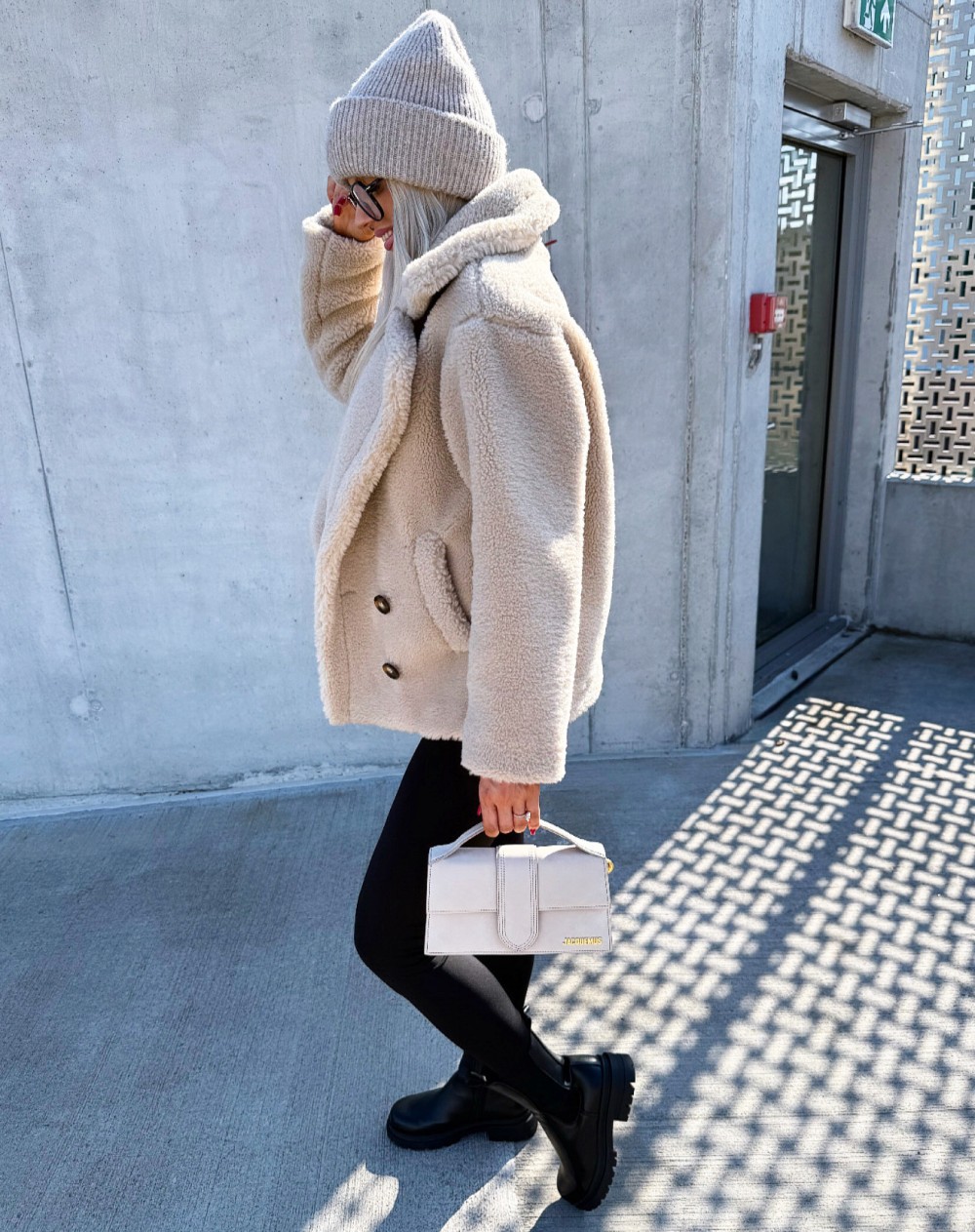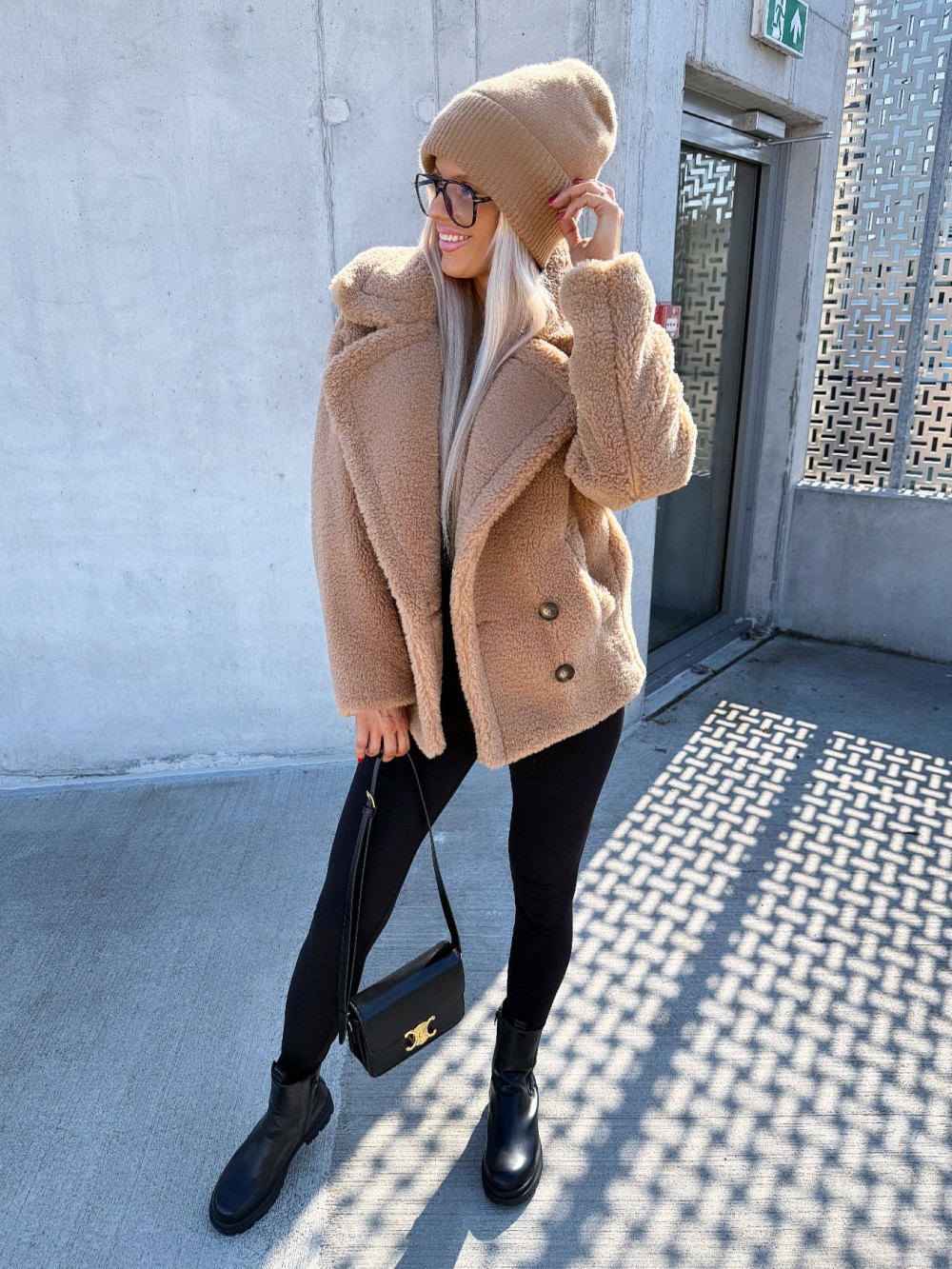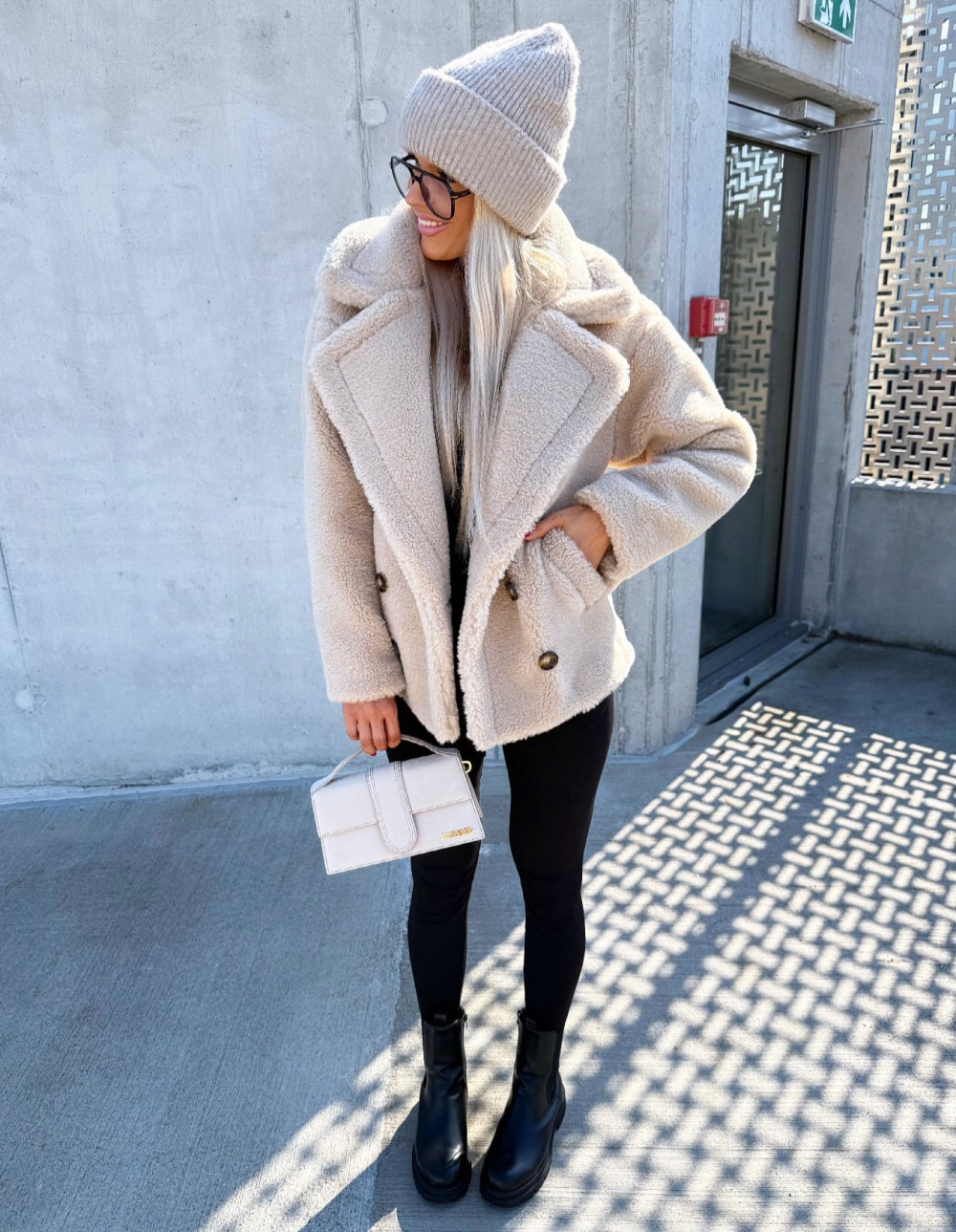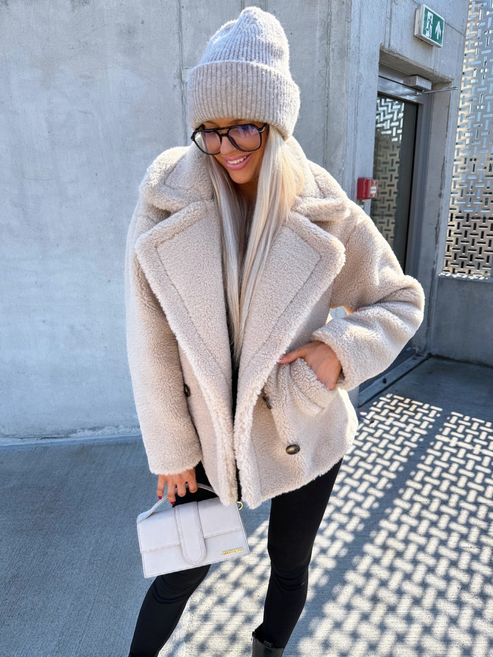 Īsa, mīksta teddy stila jaka (L, Bēša)