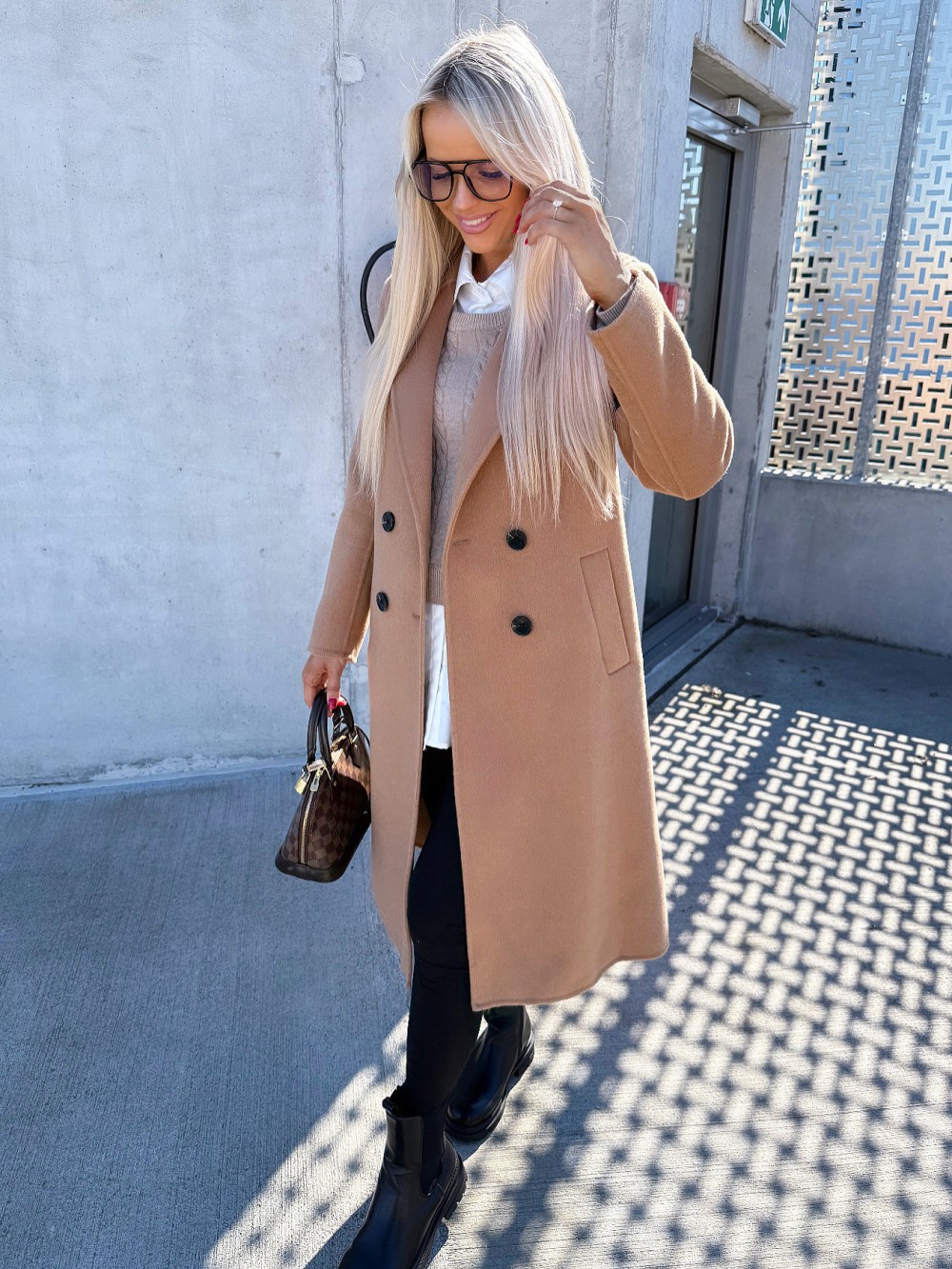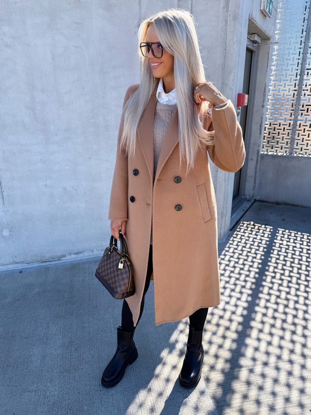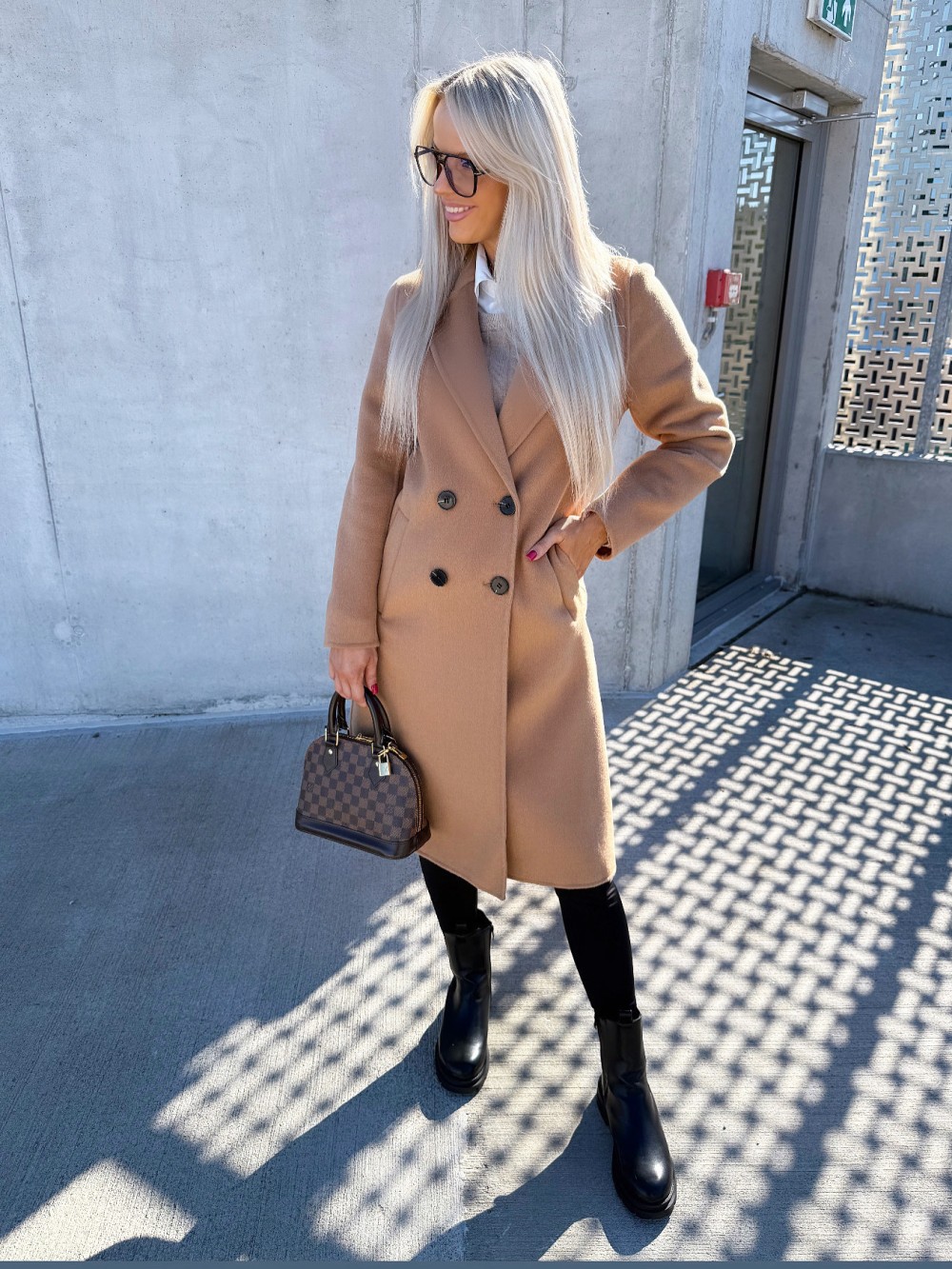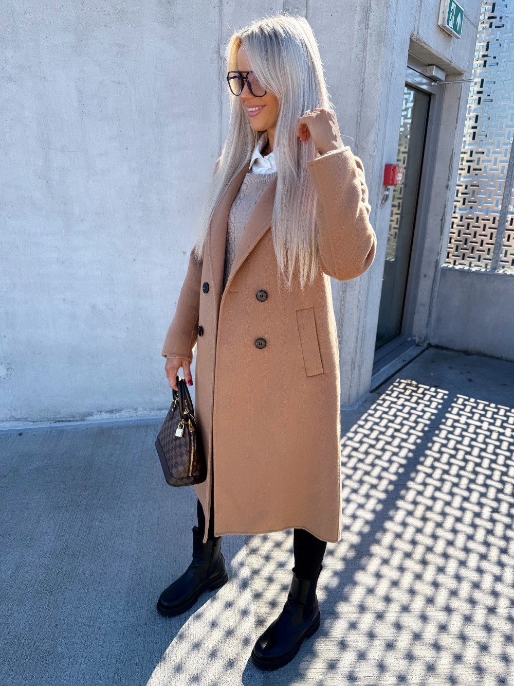 Vilnas mētelis ar pogām (Kamielis, XS/S)