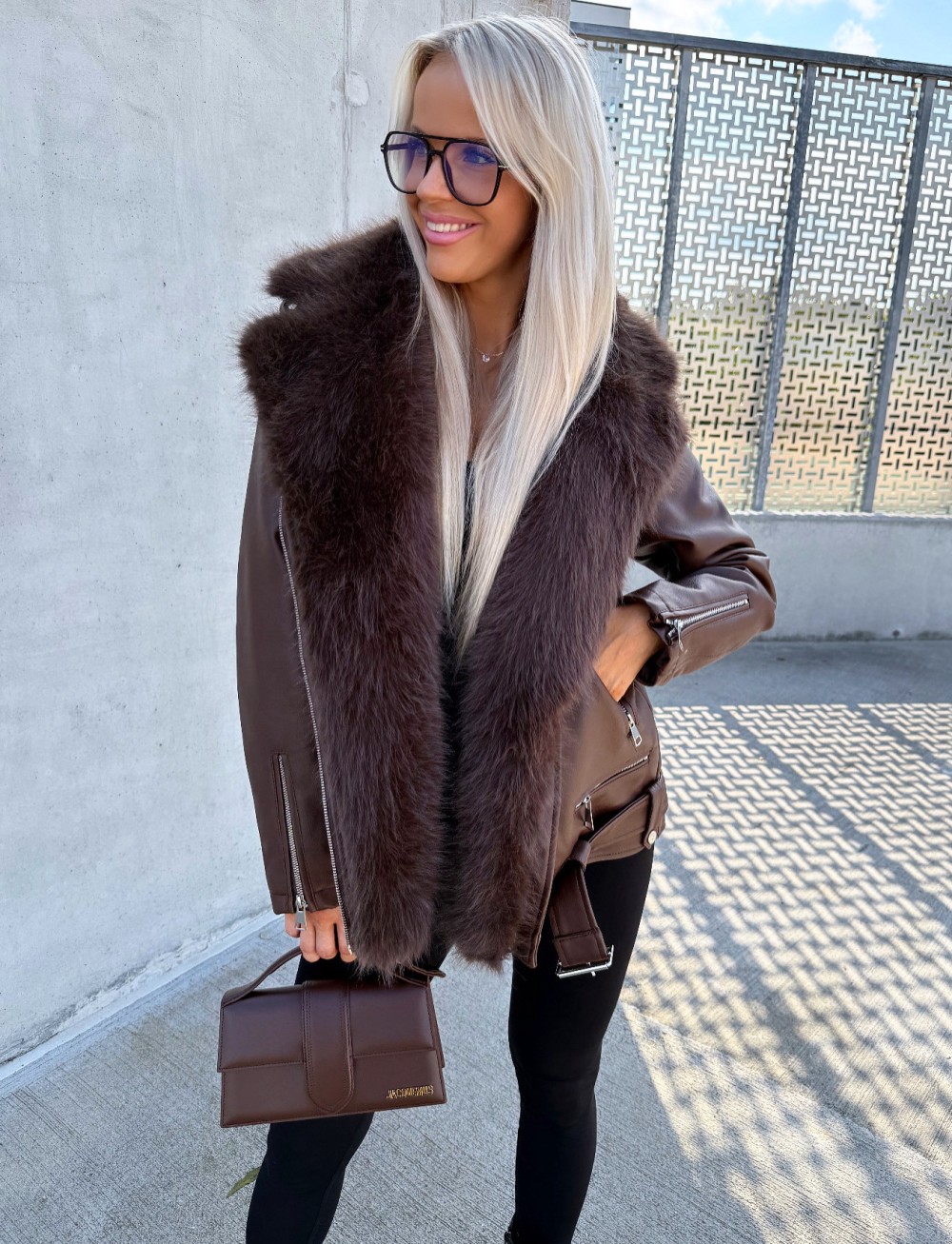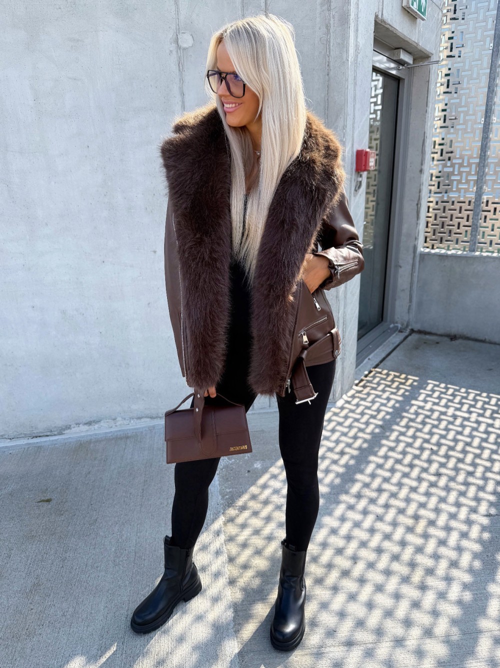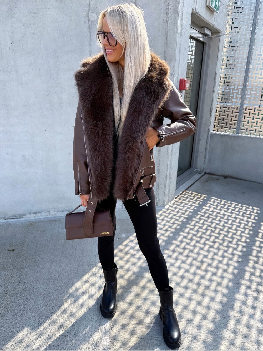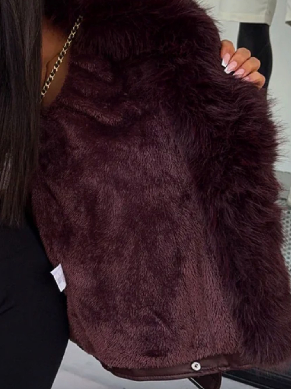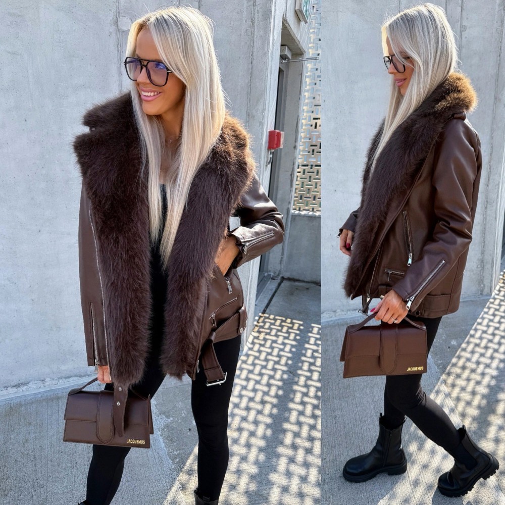 Oversize mākslīgās kažokādas jaka ar siltu oderi (Bēša, S/M)