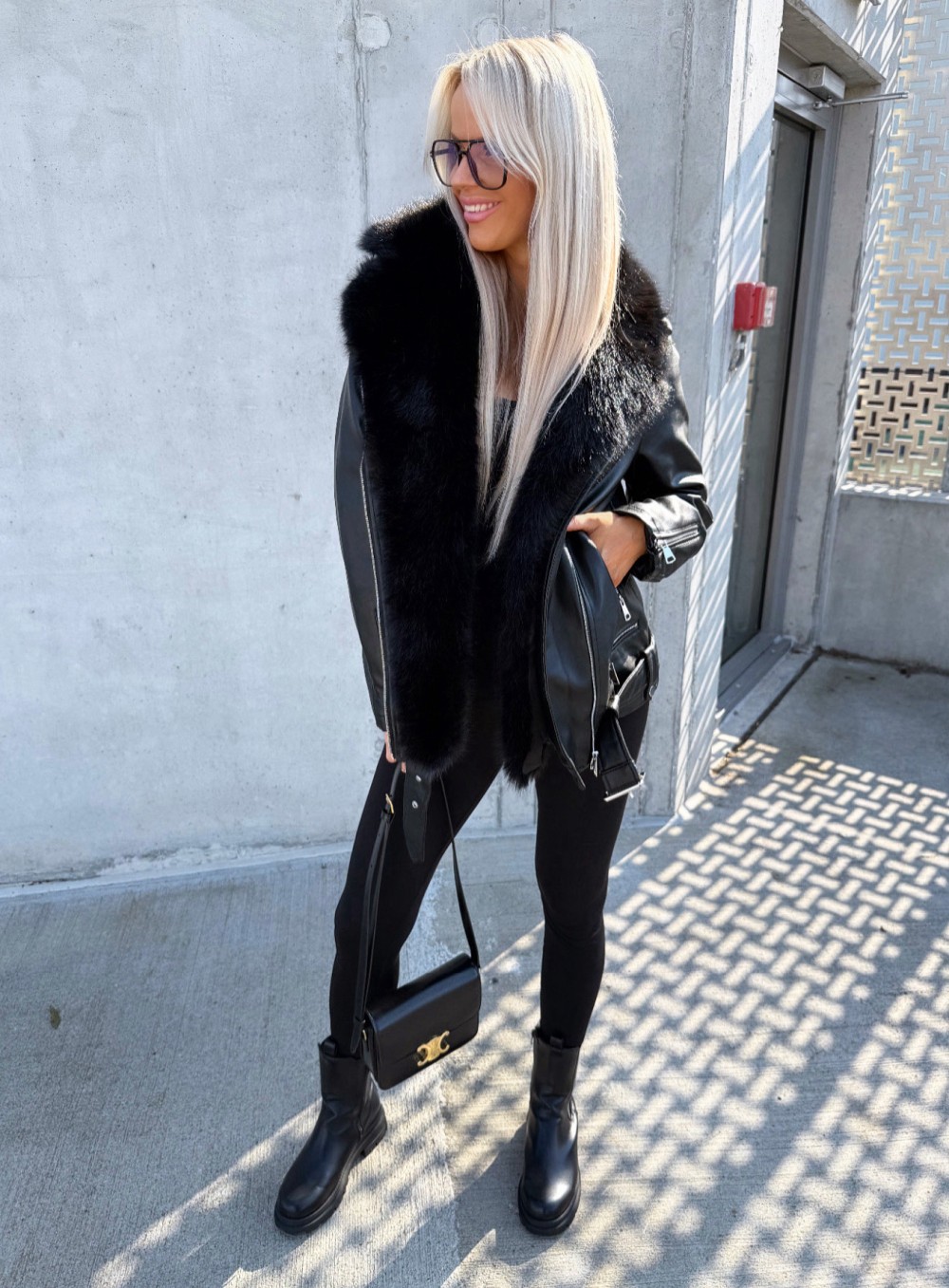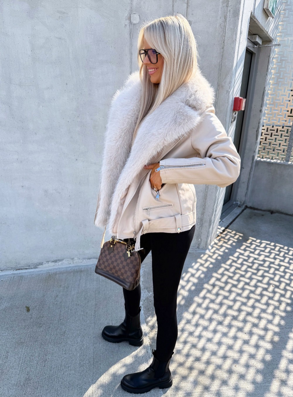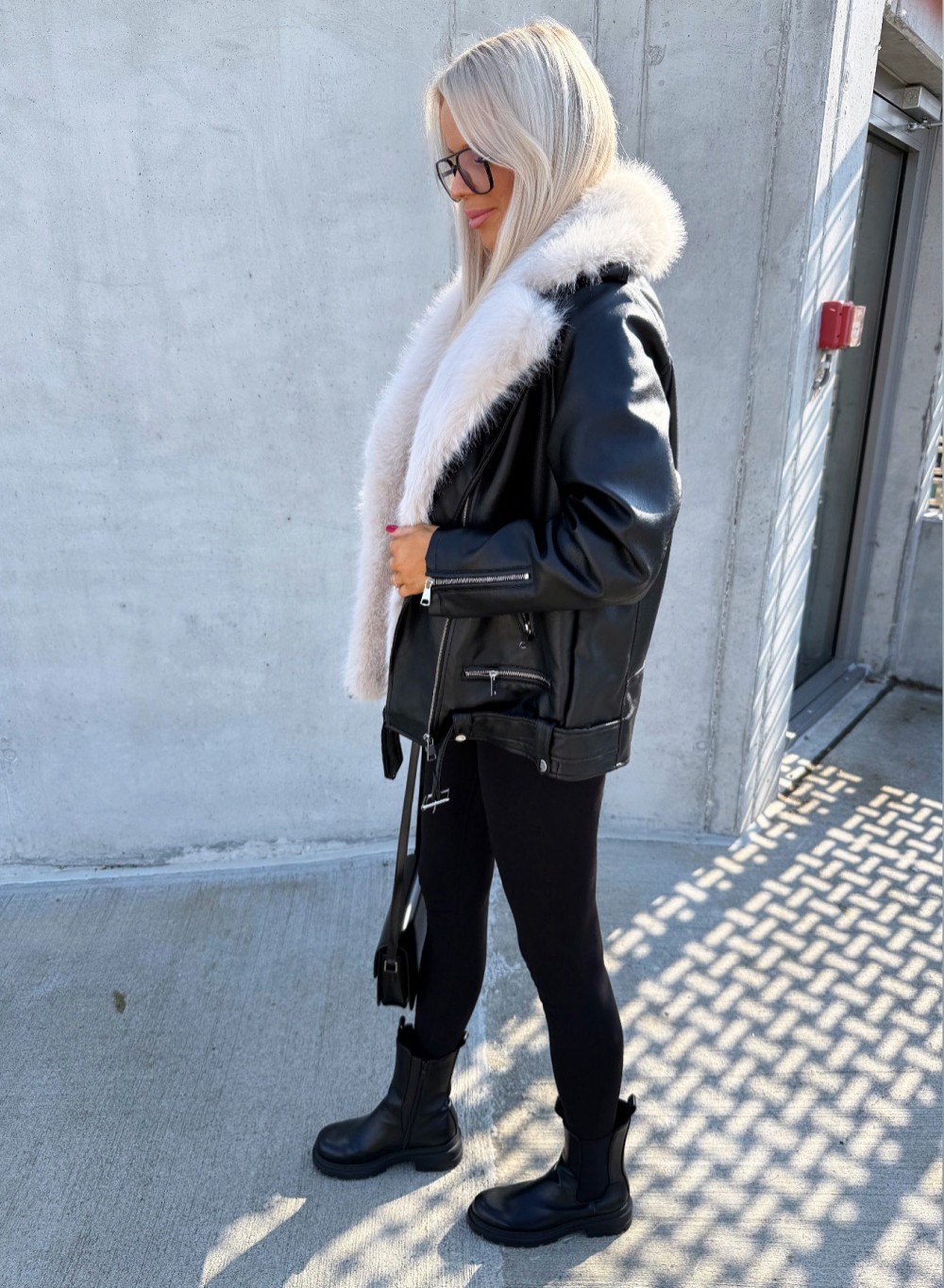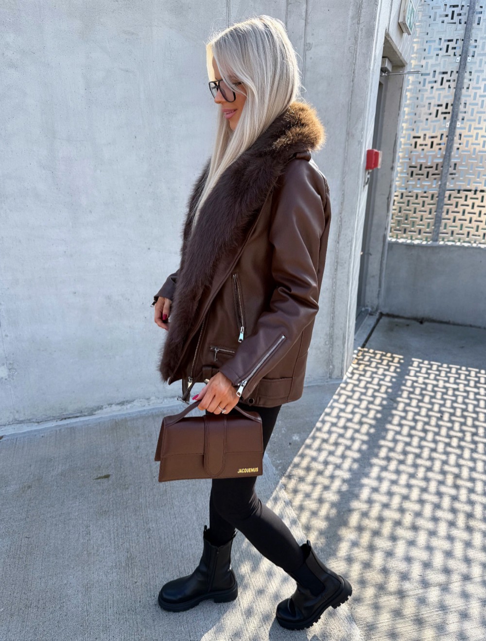 Oversize mākslīgās kažokādas jaka ar siltu oderi (Bēša, S/M)