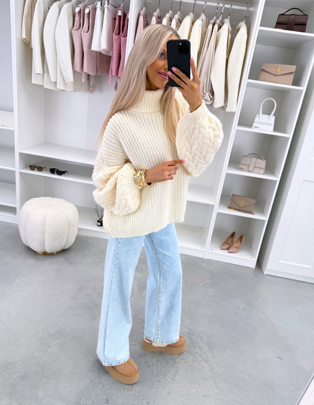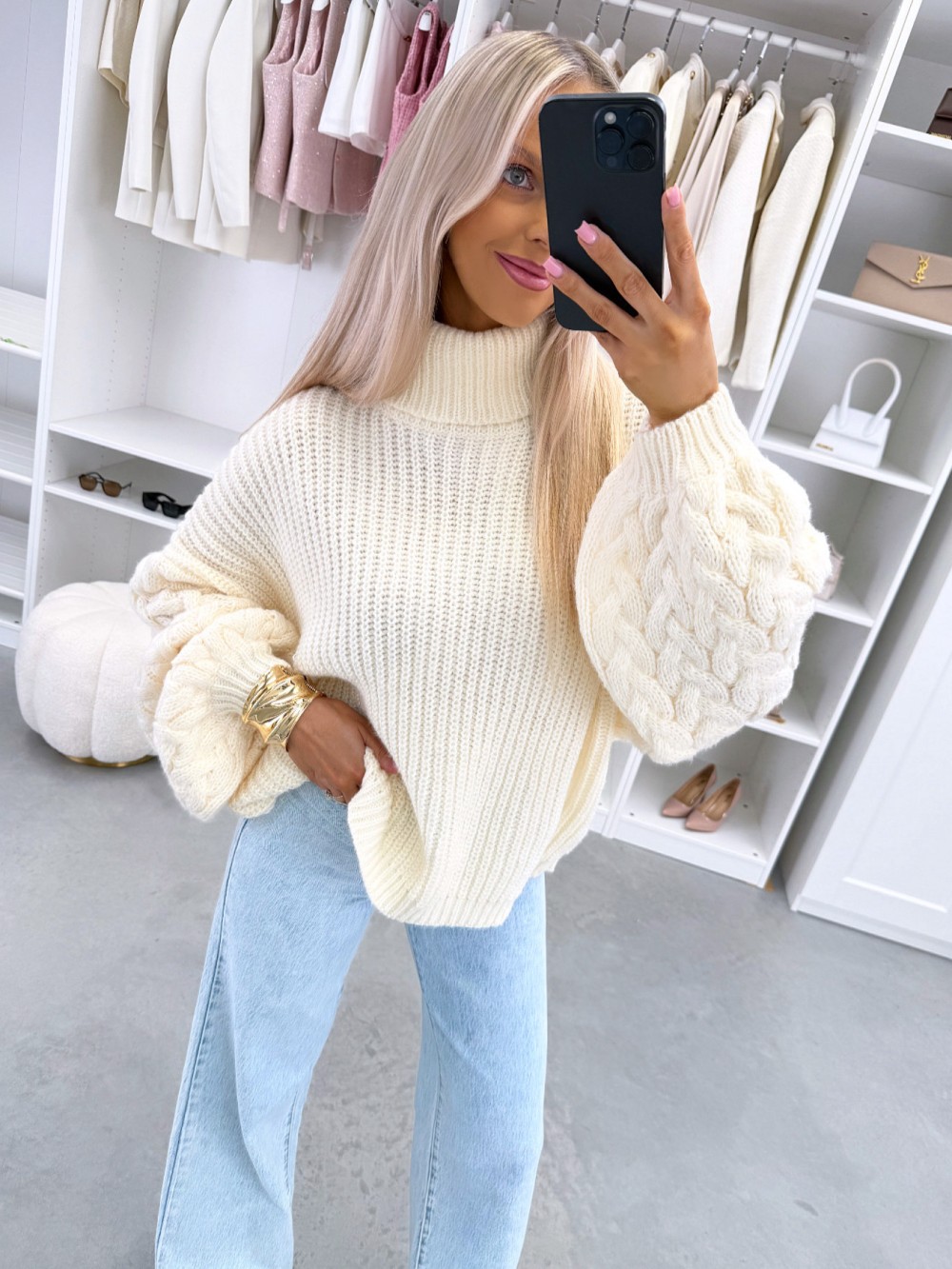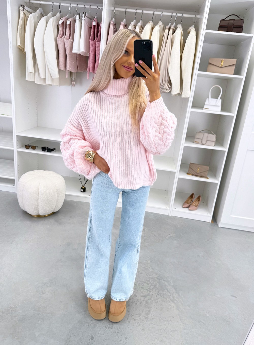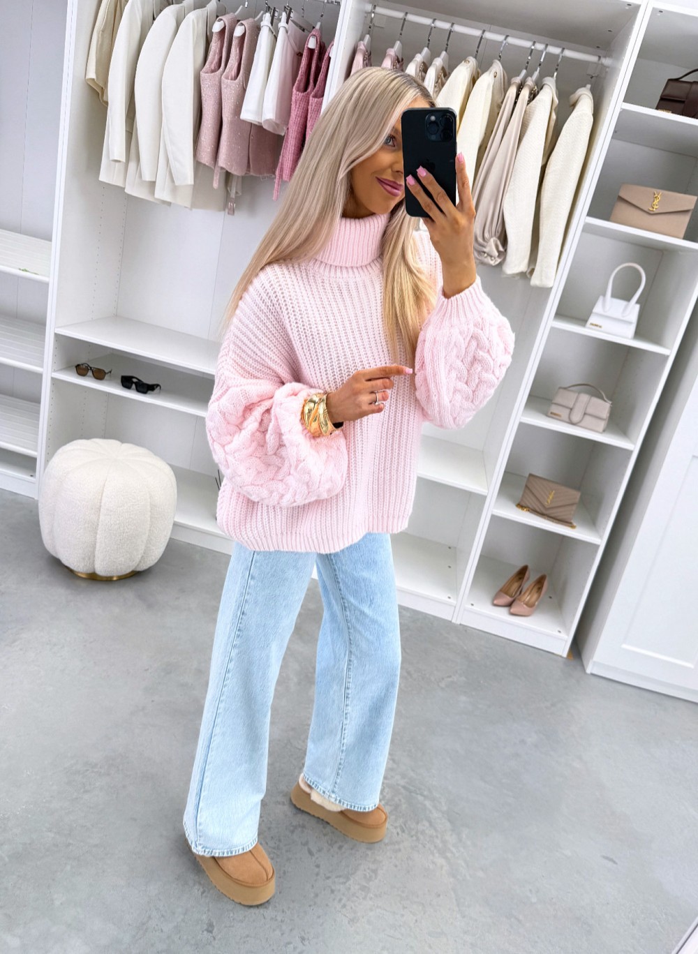 Объёмный джемпер с высоким воротом (Один размер, Розовый)